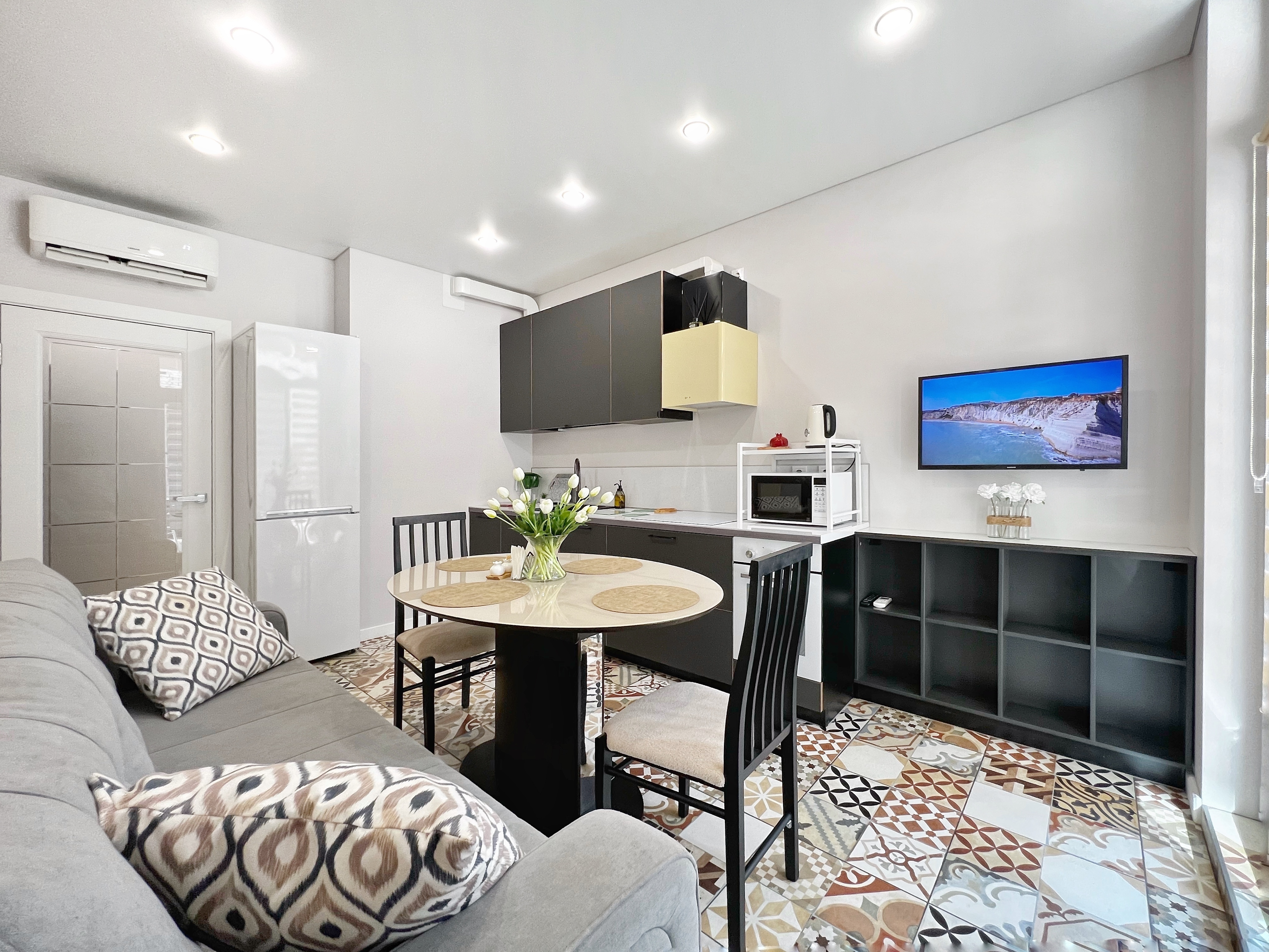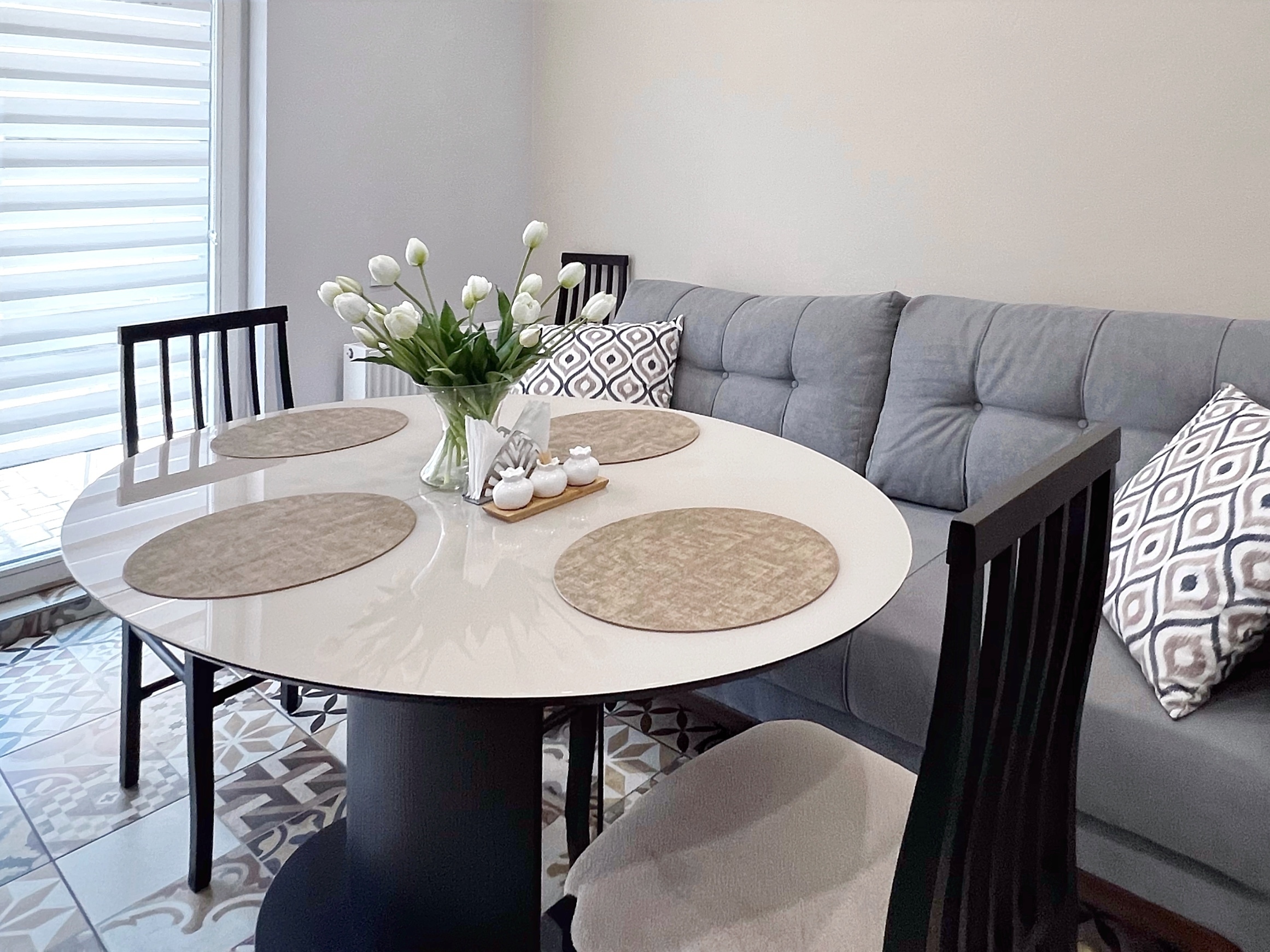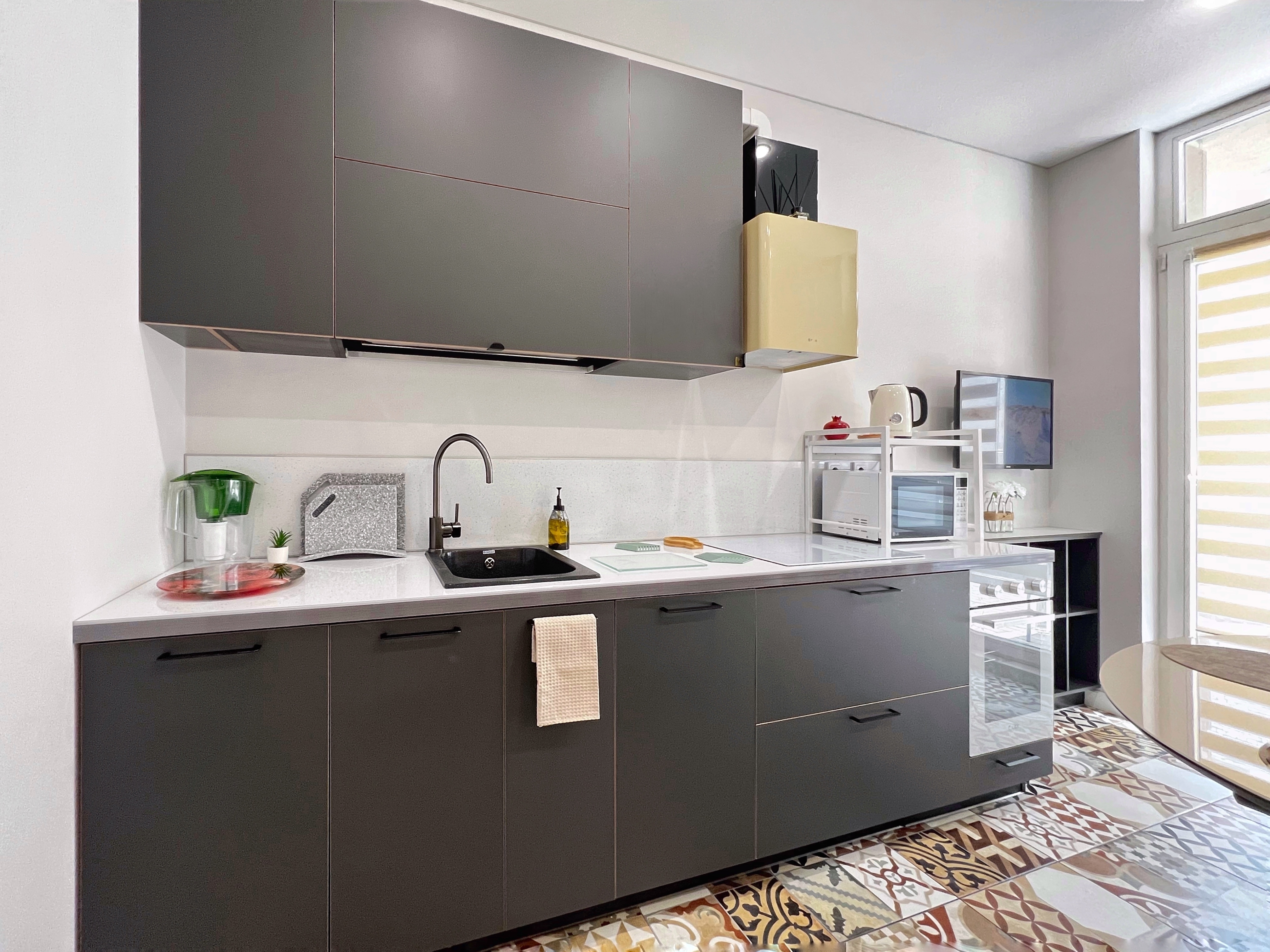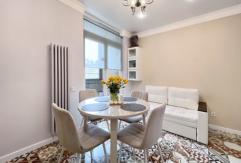 Недалеко находятся главные транспортные узлы города: станция метро «Площадь Восстания», железнодорожный вокзал и площадь Александра Невского. Благодаря такому удачному размещению гости получают легкий доступ к любому району города и ближайшим достопримечательностям.Просторные и светлые апартаменты выполнены в изысканном стиле, идеально подходящие как для романтичного отпуска, так и деловых поездок. Интерьер включает двуспальную кровать и дополнительный диван-кровать, позволяющий комфортно разместиться группе из четырех человек. К услугам гостей имеется вся необходимая бытовая техника: телевизор с возможностью подключения к кабельному телевидению, современные системы кондиционирования воздуха, просторная кухня с качественным оборудованием — холодильник, электроплита, микроволновая печь, посудомоечная машина и прочие удобства. Санузел оснащен полноценной системой горячего водоснабжения и высококачественными аксессуарами для личного пользования.Также предусмотрено всё для приятного досуга и поддержания быта: беспроводной высокоскоростной интернет, качественные постельные принадлежности и полотенца, полная уборка после каждого гостя, предмет гигиены первой необходимости и даже вкусный стартовый набор из чая, кофе и сахара, чтобы начать утро приятно и расслабленно. Для малышей возможен заказ детского стула для кормления и дополнительного спального места.Каждый гость почувствует искреннюю заботу и уют домашней обстановки в сочетании с европейским уровнем сервиса и неповторимой атмосферой старинного города.