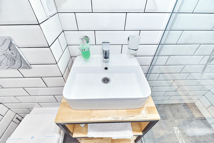 Санузел: с душем, тапочки, туалетные принадлежности, фен
