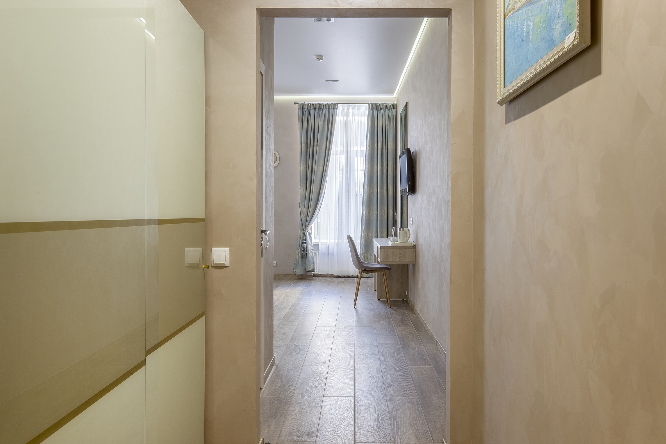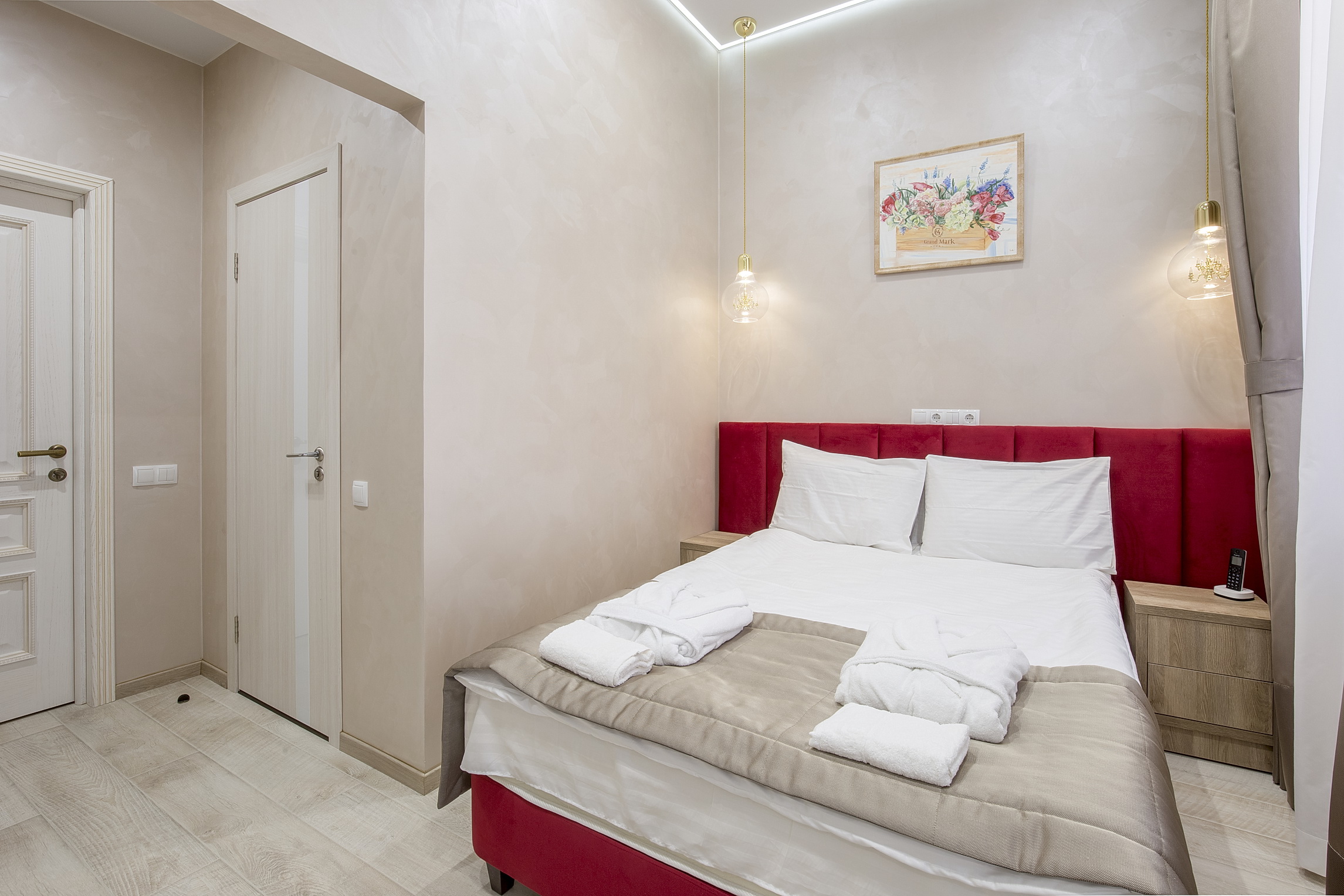 Отель «Гранд Марк» располагается в историческом центре Санкт-Петербурга, на атмосферной улице – Галерной.Дизайн отеля выполнен в классическом стиле в сочетании спокойных бежевых и голубых тонов. Роскошная мебель придает элегантности отелю. Уникальными атрибутами интерьера являются картины с видами города Петербуржской художницы Лагуткиной Н.Н., которые украшают каждый номер отеля.