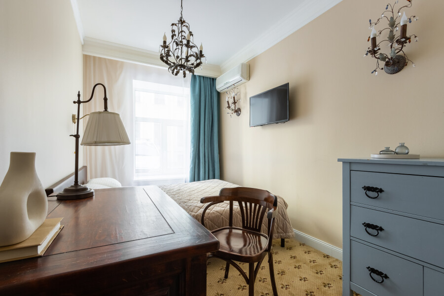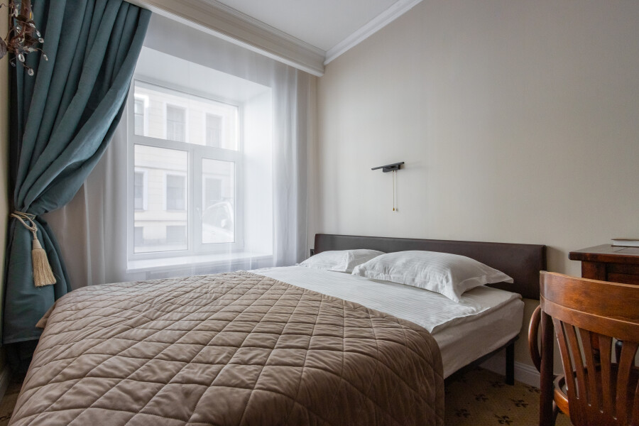 «Грандора Эрмитаж» — резиденция в духе императорской эпохи. Вокруг — спокойствие тихого двора, но при этом — вся культурная жизнь Петербурга под рукой.Для гостей подготовлены номера, продуманные до мелочей: большая кровать с ортопедическим матрасом, светонепроницаемые шторы, собственная ванная комната с душем, феном, тапочками и косметическими средствами. В распоряжении — холодильник, микроволновка, чайник, кофе и чай, кабельное ТВ, Wi-Fi и даже утюг с дополнительными подушками — всё, чтобы чувствовать себя как дома, даже на короткой остановке.Отель предлагает сервис без суеты: чай и кофе в течение дня, прокат зонтов на случай петербургской капели, услуги прачечной и гладильные принадлежности по запросу.