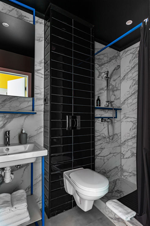 Санузел: с душем, туалетные принадлежности, фен