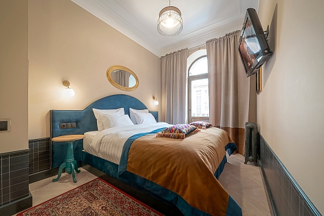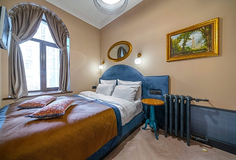 Ближайшими достопримечательностями являются Ковенский переулок, сад Павловского института, Греческий сквер, музей Анны Ахматовой. Расстояние до аэропорта составляет 21 километр. Добраться до железнодорожного вокзала можно всего за 15 минут пешком. Отель расположился на 2 этаже 5-этажного жилого здания. Номера оформлены в классическом британском стиле. В комнатах есть мягкая удобная мебель, шкаф для хранения одежды, телевизор с плоским экраном. Санузел индивидуальный для каждого номера, оснащен душем, туалетом и раковиной. Гостям предоставляются полотенца и косметические принадлежности. По запросу отдыхающие могут воспользоваться гладильными принадлежностями. Дополнительно можно заказать авиа и ж/д билеты у администратора. На всей территории мини-отеля работает Wi-Fi.
