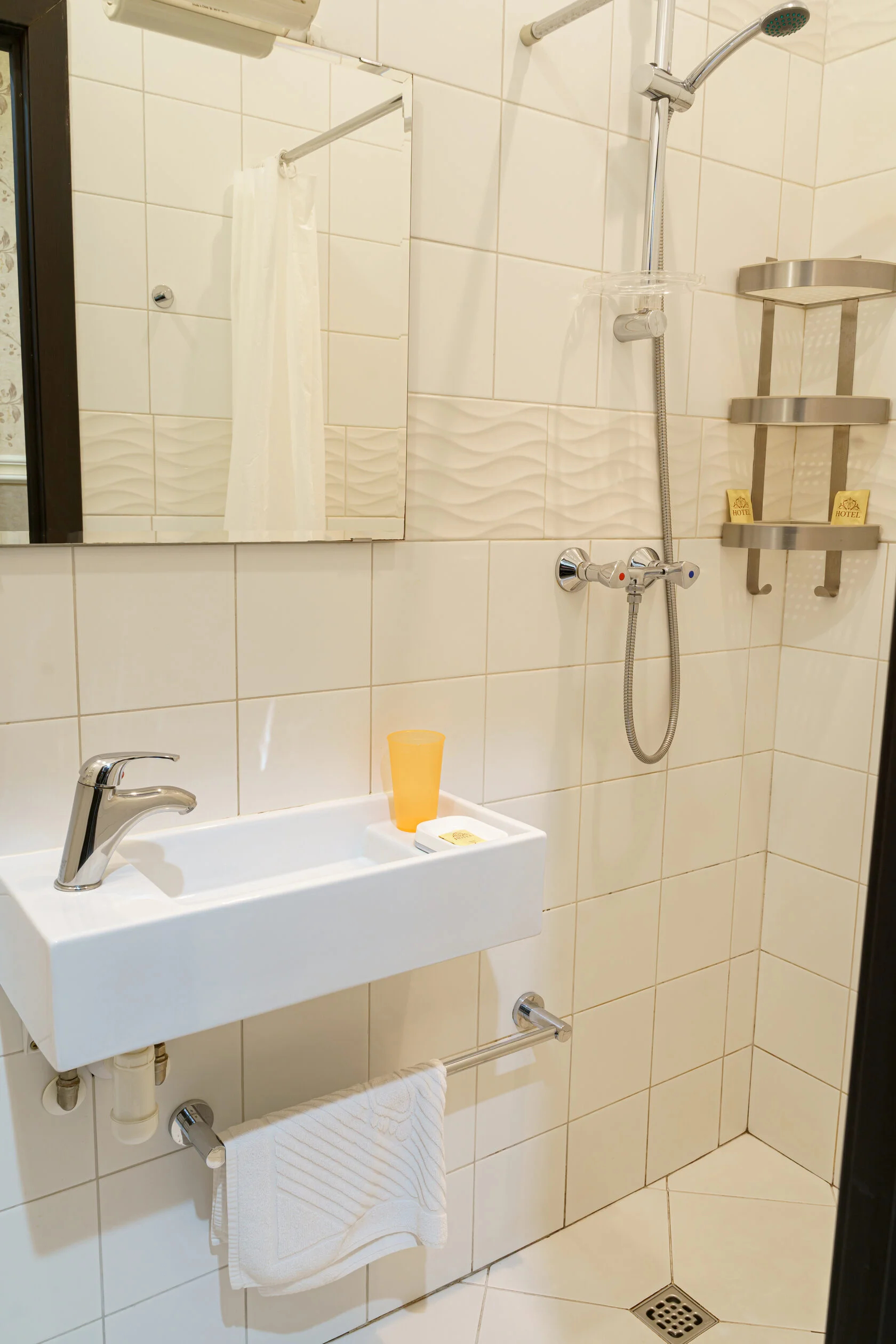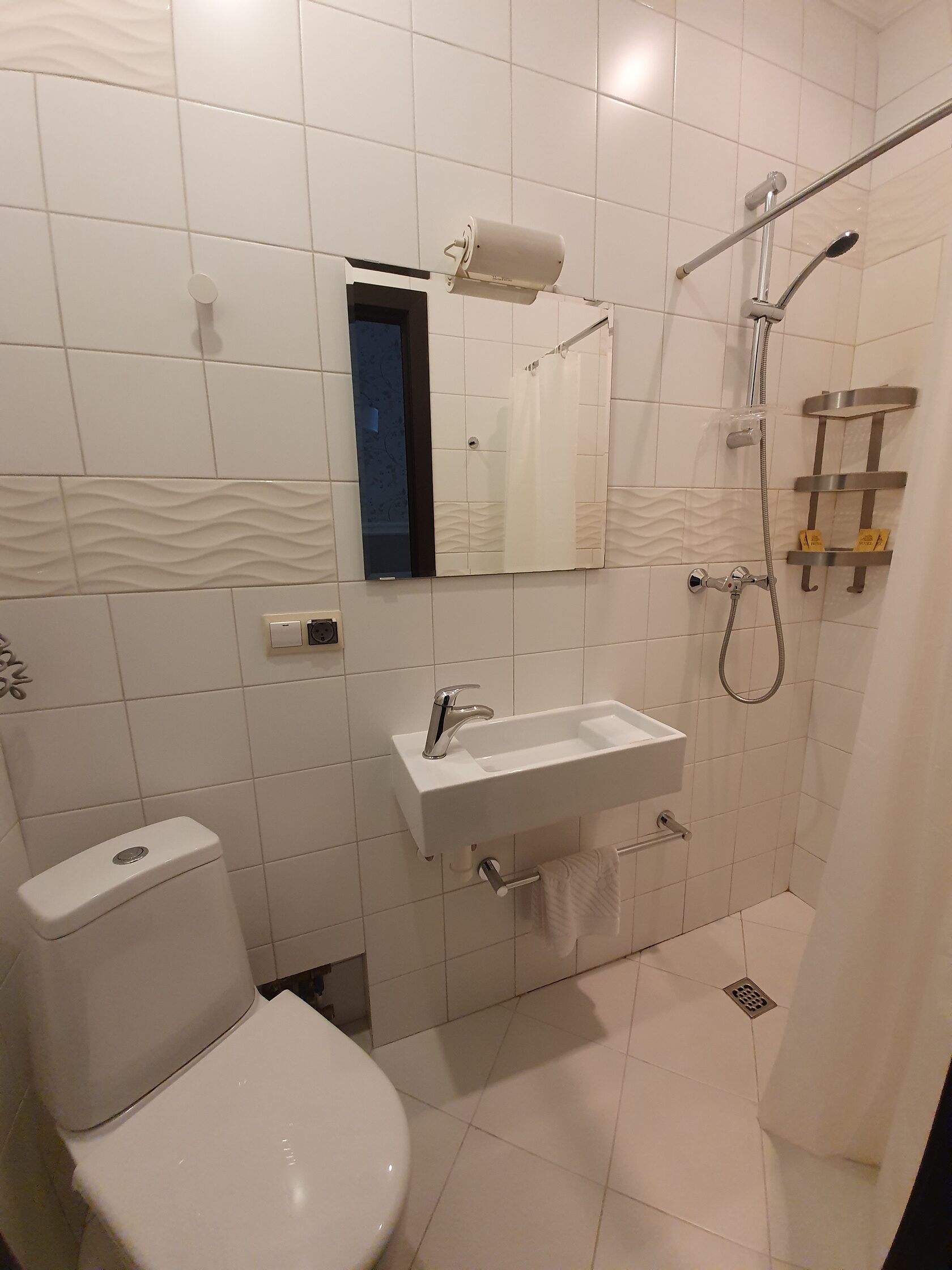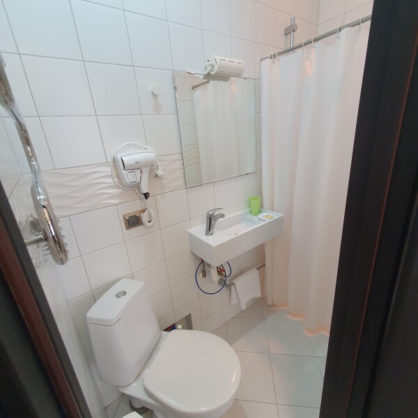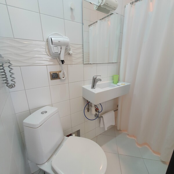 Санузел: с душем, тапочки, туалетные принадлежности, фен
