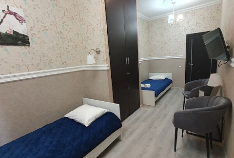 В номере: вешалка, диван раскладной, кровать односпальная, стол, стул, телевизор