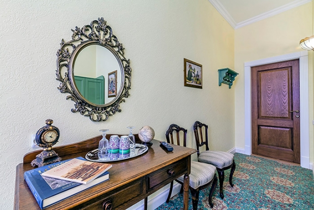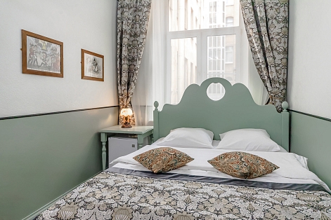 В номере: вешалка, зеркало, кровать двуспальная, стол, стул, шкаф, мини-холодильник, телевизор