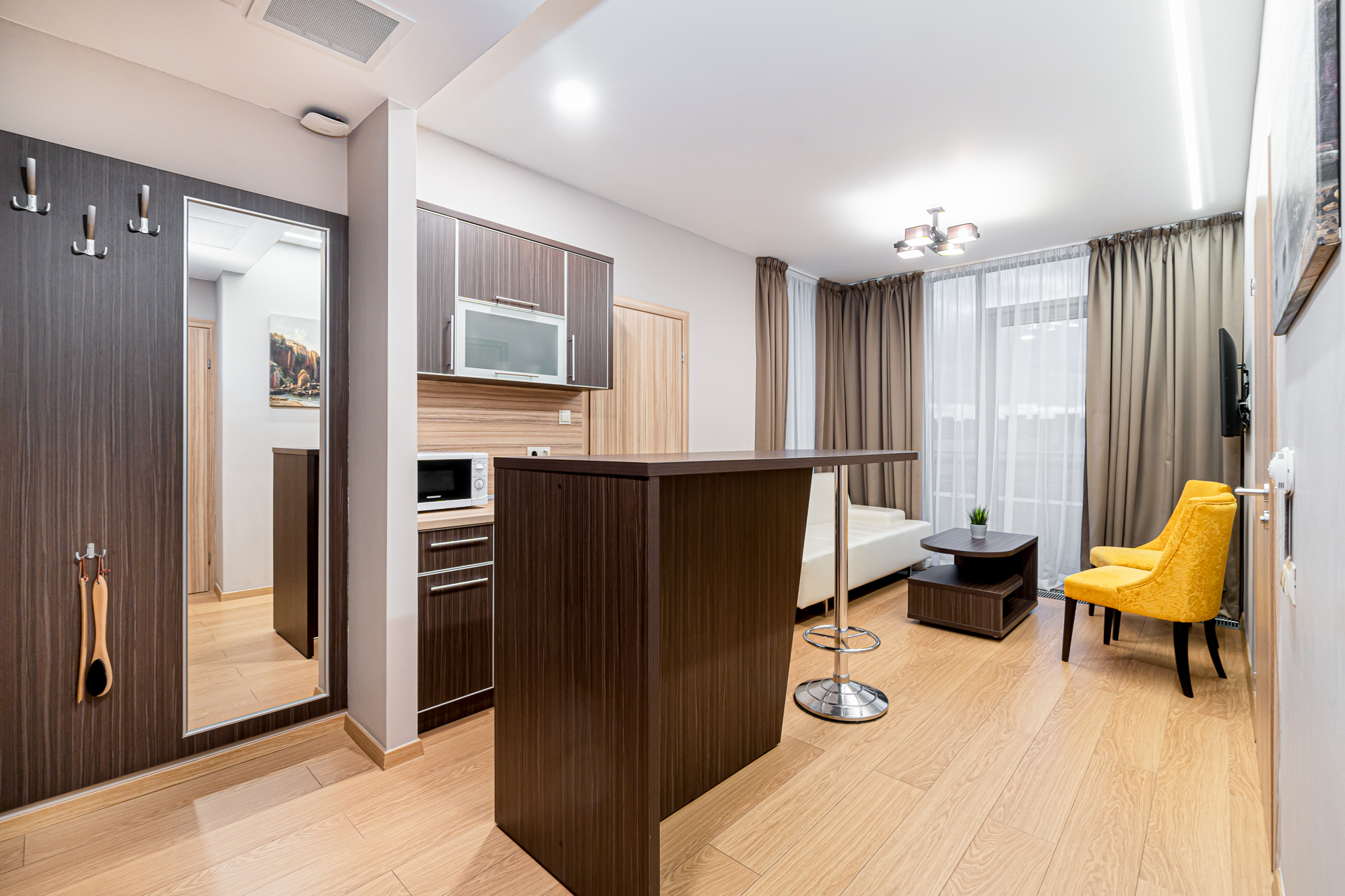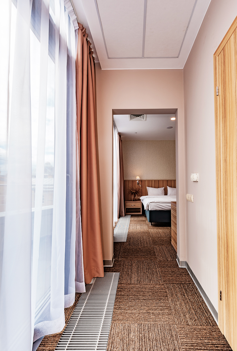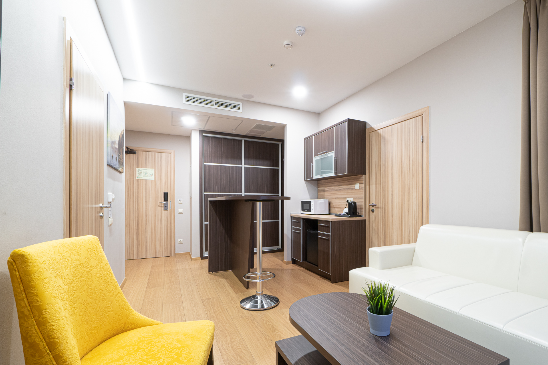 В распоряжении гостей 80 номеров разных категорий со светлыми приятными интерьерами. В жилом фонде есть как уютные стандартные номера, так и просторные Апартаменты с кухней и террасой. Во всех номерах установлены кондиционеры, имеется необходимая бытовая техника, а также предусмотрена собственная ванная комната, где для отдыхающих подготовлены косметические наборы. Для гостей отеля работают лобби-бар и ресторан, среди услуг – высокоскоростной интернет и крытая охраняемая парковка, а для проведения деловых мероприятий оборудован конференц-зал, рассчитанный на 60 приглашенных.