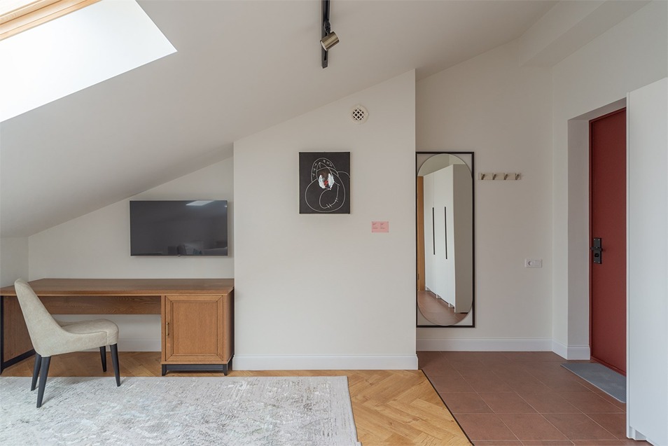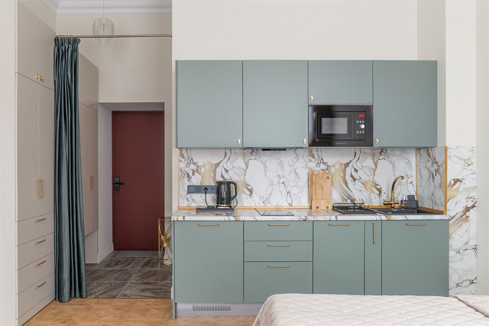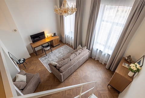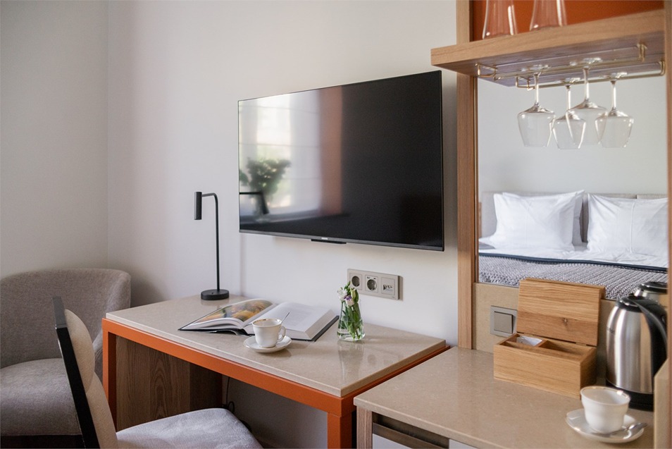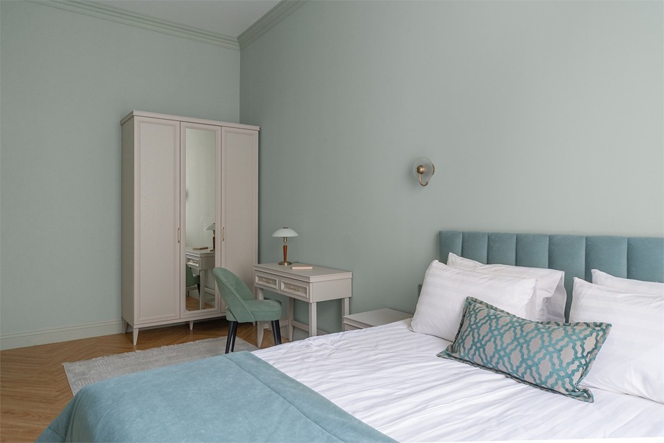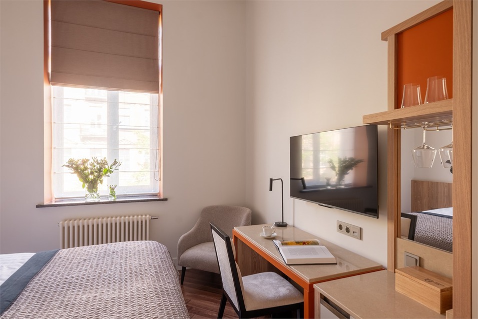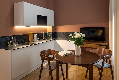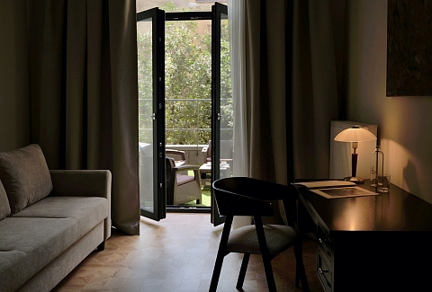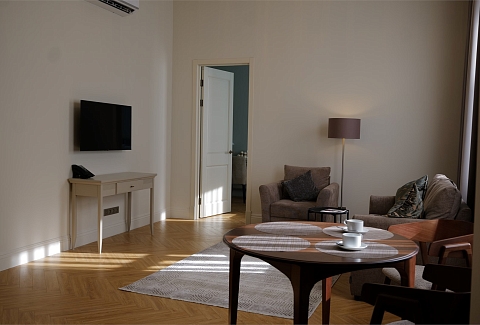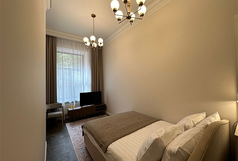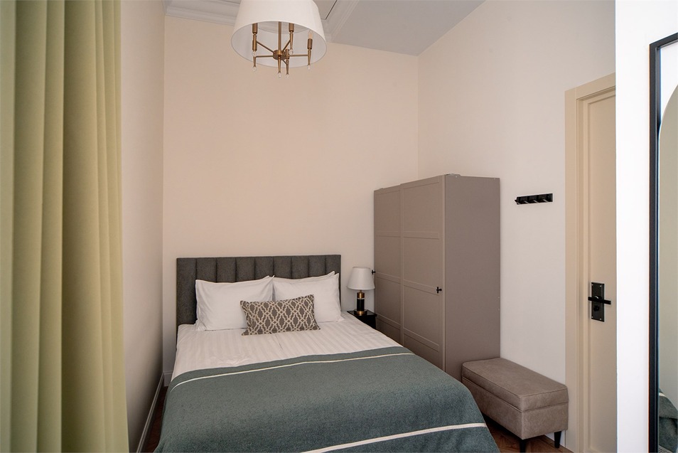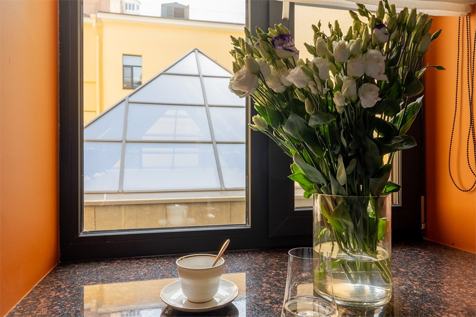 В номерах – лаконичные стильные интерьеры, дизайнерская мебель, оборудованная кухня со столовой зоной, кондиционер. Из окон некоторых номеров открываются виды на Никольский собор.В отеле работает лобби-бар, в распоряжении отдыхающих – тренажерный зал, библиотека, среди удобств – безлимитный интернет, а также бизнес-зоны для коворкинга, конференций и прочих деловых мероприятий.