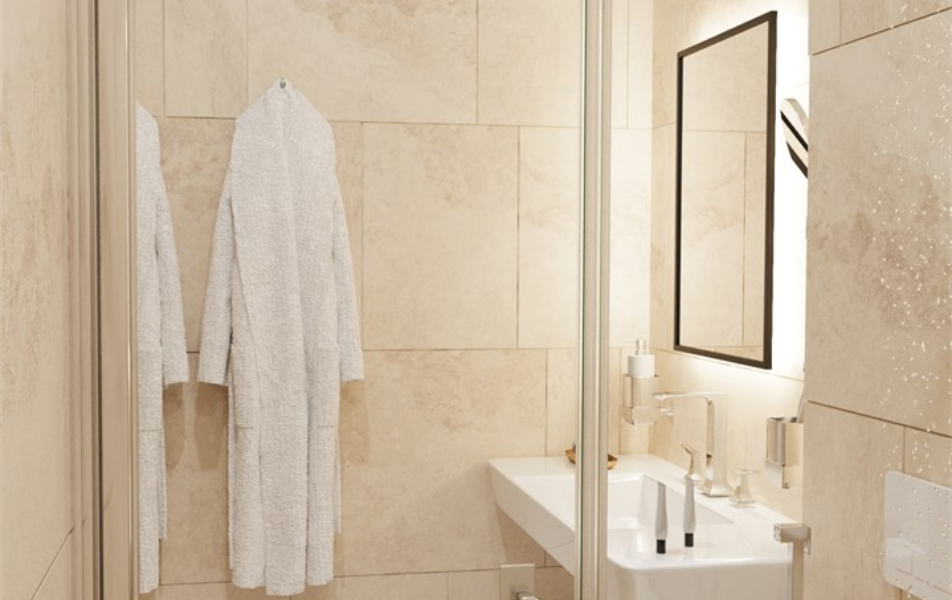 Санузел: с ванной или душевой кабиной, тапочки, туалетные принадлежности, фен, халат