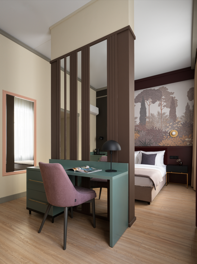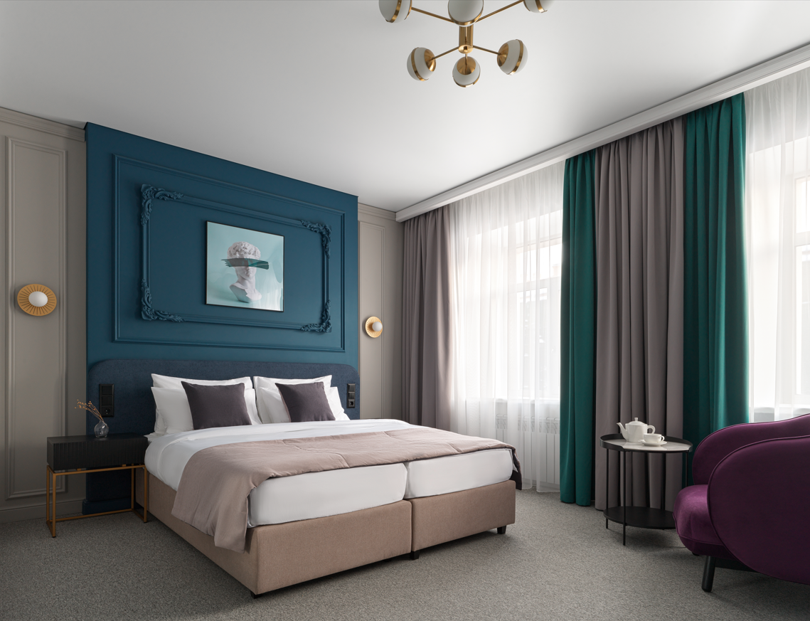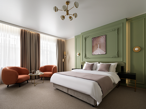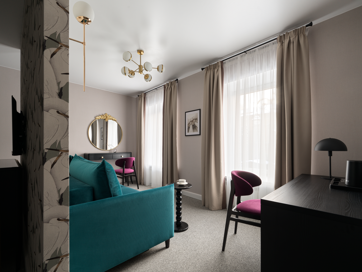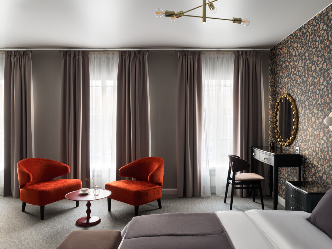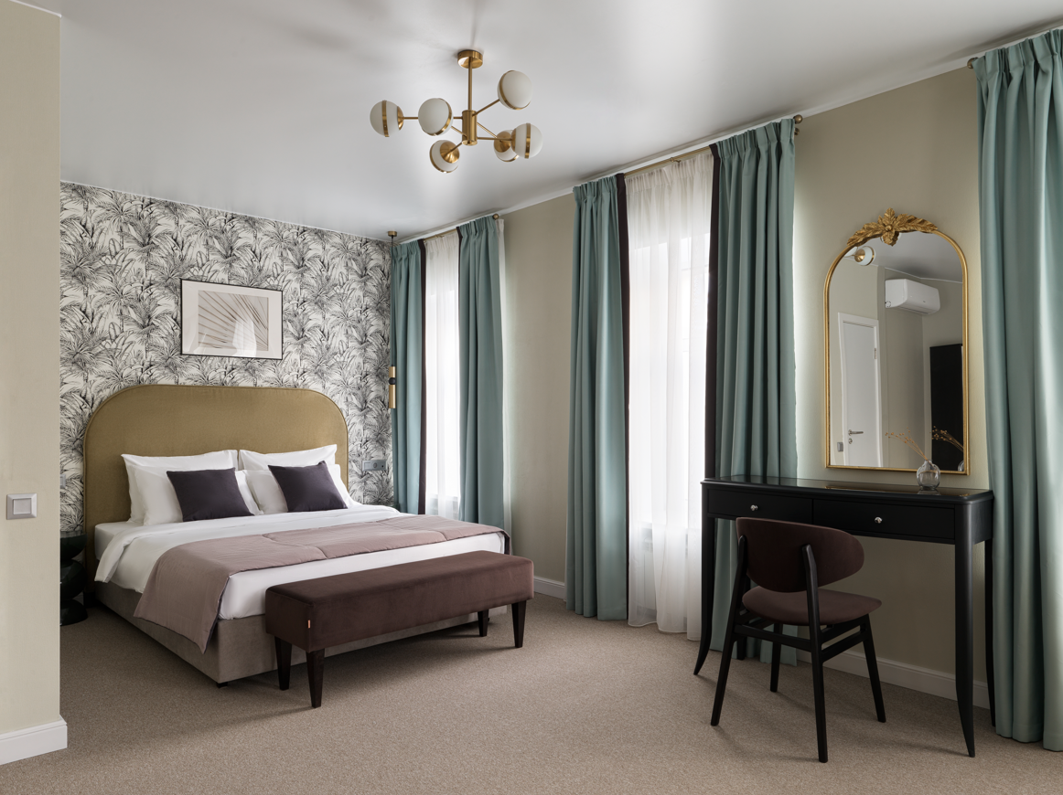 В отеле всего 14 уникальных дизайнерских номеров. Они объединены общей концепцией, но каждый обладает собственной стилистикой, настроением и характером — чтобы каждый гость мог найти пространство, которое откликается именно ему.Мы начинаем заботиться о вашем комфорте ещё на этапе бронирования: встреча и заселение организуются с учётом ваших индивидуальных предпочтений. Круглосуточная консьерж-служба всегда рядом, чтобы помочь с бытовыми задачами, будь то заказ такси, столика в ресторане или разбудить в нужное время.