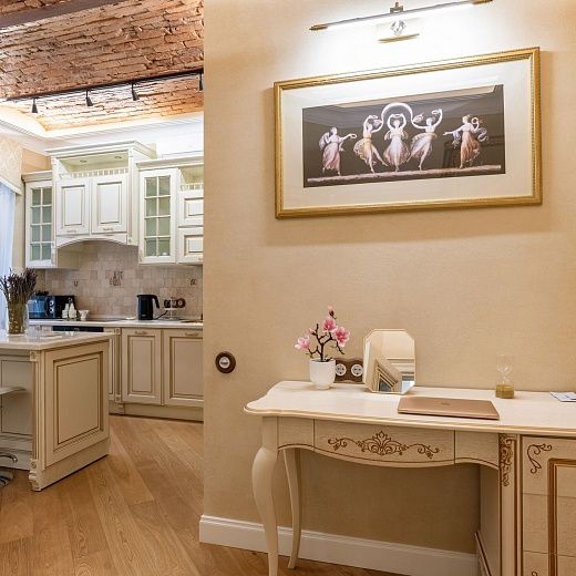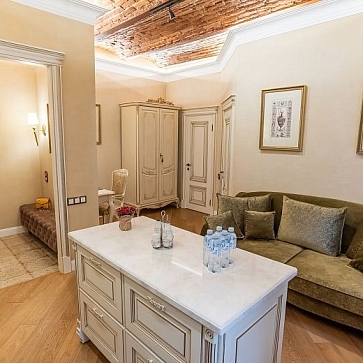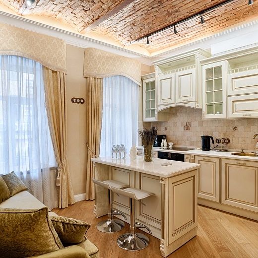 Изысканные апартаменты у Дворцовой площади — комфорт в центре Петербурга. Пространство оформлено в классическом интерьере с использованием натуральных качественных материалов, что создаёт атмосферу уюта и изысканности.Апартаменты включают отдельную спальню, кухню и оснащены кондиционером — важное преимущество при размещении в центре города, особенно в жаркие месяцы. Окна выходят в тихий внутренний двор, где царит покой и нет городского шума.Гостям предоставляется закреплённое парковочное место во внутреннем дворе — редкость для центрального района, особенно с учётом платных зон на главных улицах.