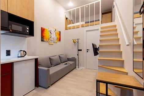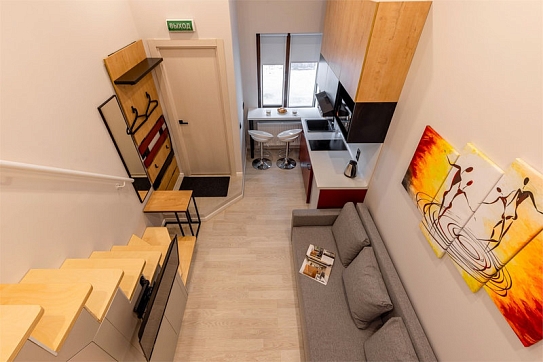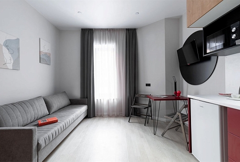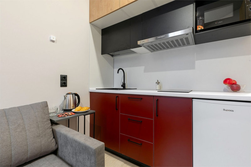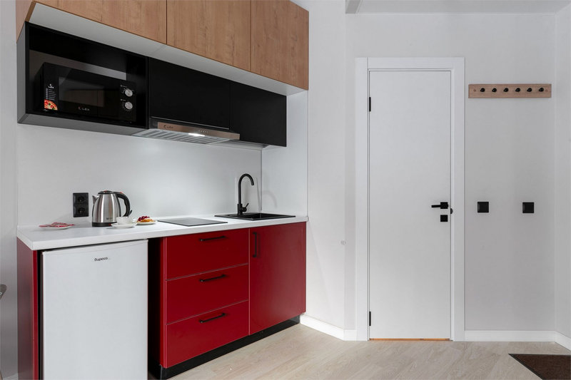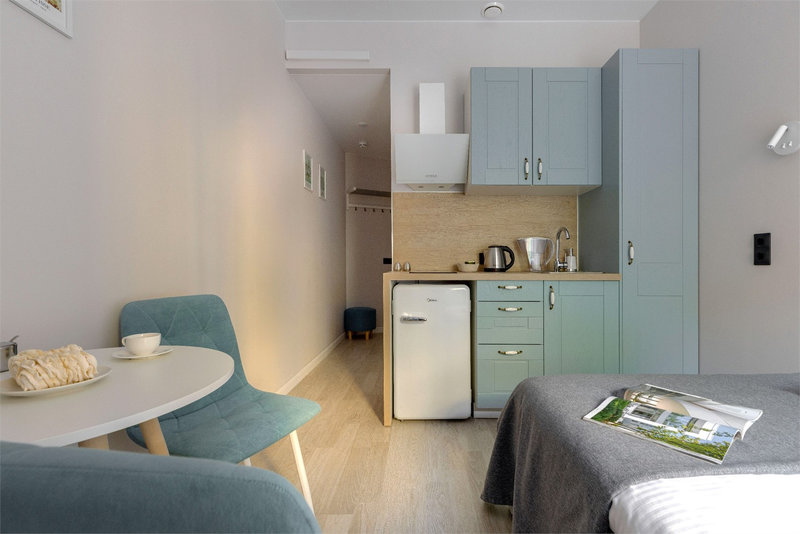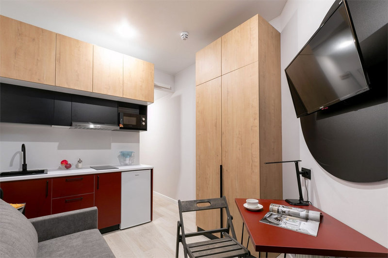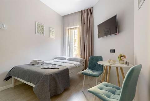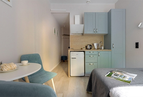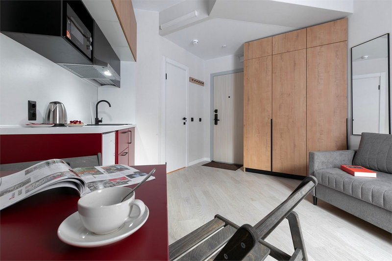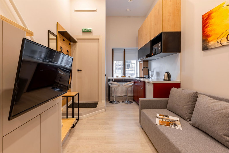 В окружении — кафе, минимаркеты, коворкинги и бизнес-центры, а также аптеки и пункты выдачи заказов. Это идеальное место как для деловых поездок, так и для знакомства с Петербургом без лишней суеты.Пространства оформлены в скандинавском лаконичном стиле: белые и серые тона, дерево, тёплый рассеянный свет, стены с текстурой. В каждом номере — телевизор, чайная станция и полностью оборудованная мини-кухня с посудой. Ванная комната оснащена душем, феном, туалетными принадлежностями. Гостей ждут качественный текстиль, повышенная шумоизоляция и продуманная эргономика. Предусмотрены варианты с панорамным остеклением, французскими балконами и двухуровневые апартаменты с отдельным входом. На территории комплекса — системы видеонаблюдения и удалённого контроля доступа.Собственная благоустроенная территория и тихий двор создают атмосферу уединения в двух шагах от городской жизни. Это место, где можно остановиться на день, неделю или месяц, чувствуя себя не гостем, а временным жителем одного из самых вдохновляющих районов Петербурга.