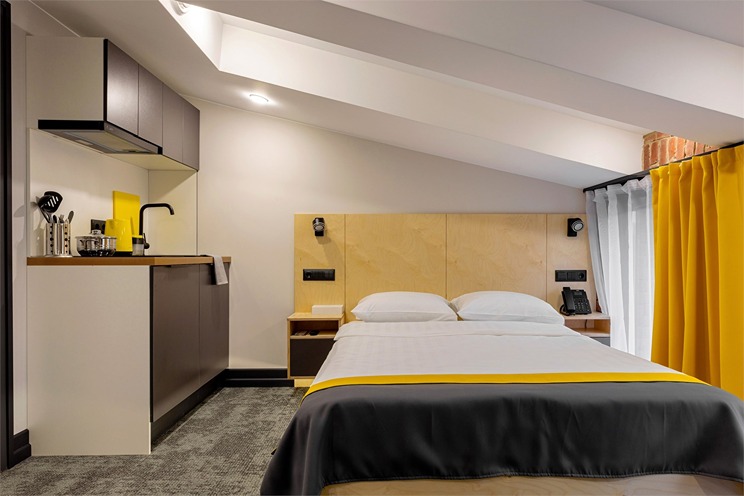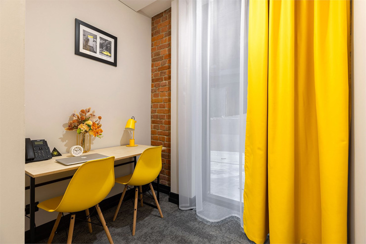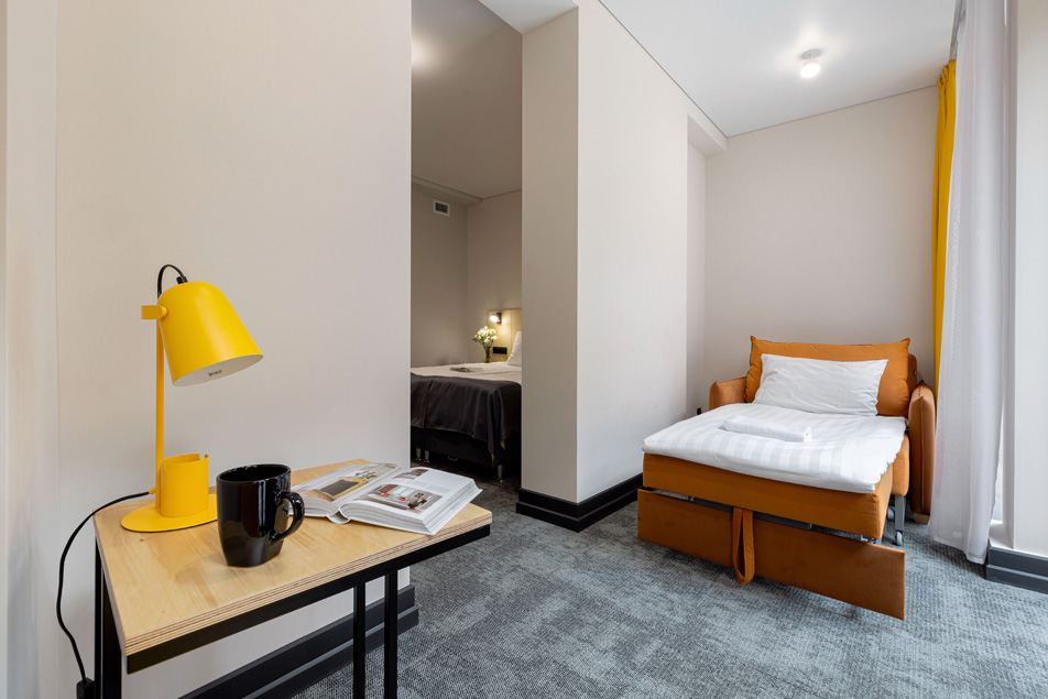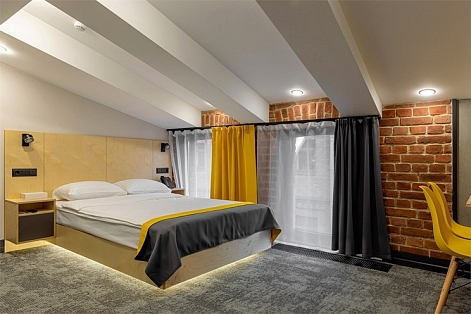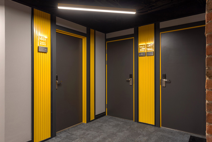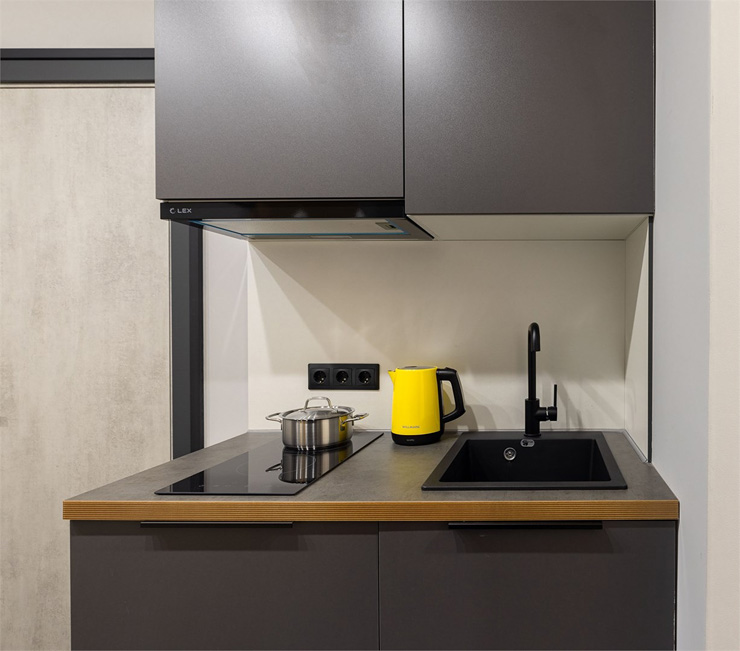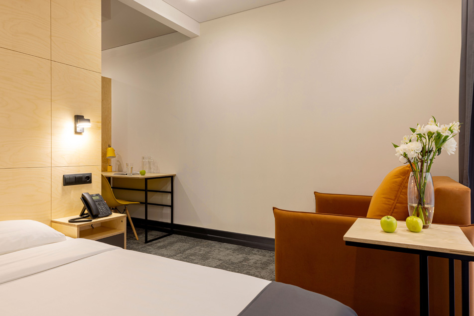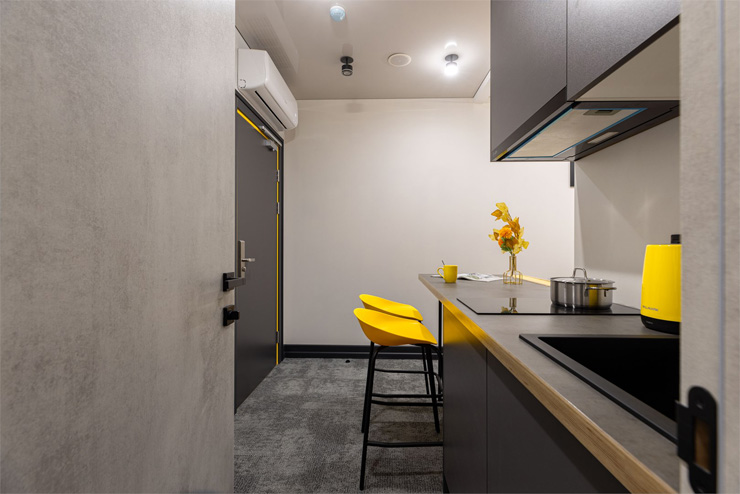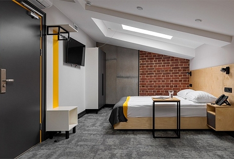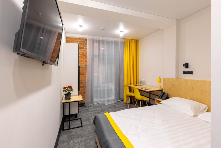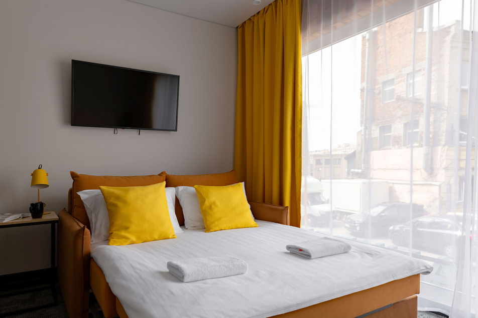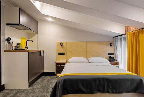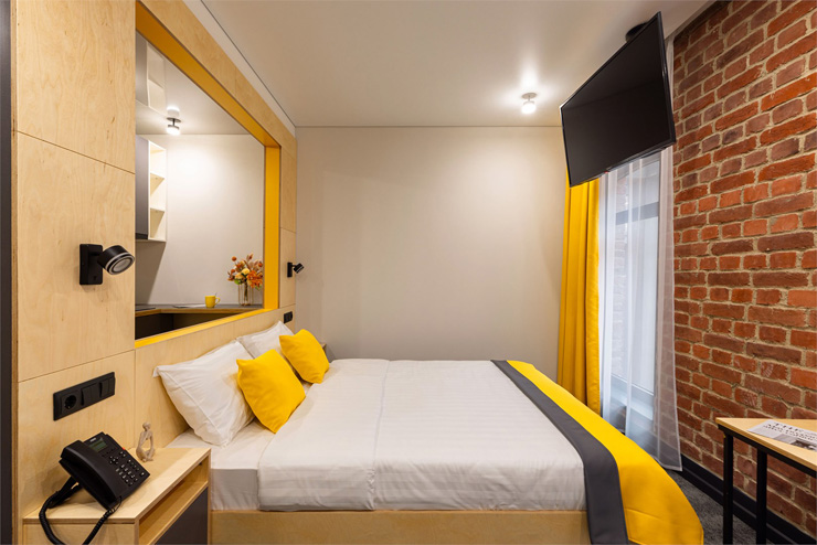 Все категории полностью подготовлены к заселению постояльцев: располагают удобными спальными местами, функциональной мини-кухней, индивидуальной ванной комнатой. Доступно подключение к Wi-Fi. Возможно проживание с питомцем мелкой породы.На территории организованы лаундж- и арт-зоны, библиотека. Во внутреннем дворе у здания обустроена вместительная автостоянка.