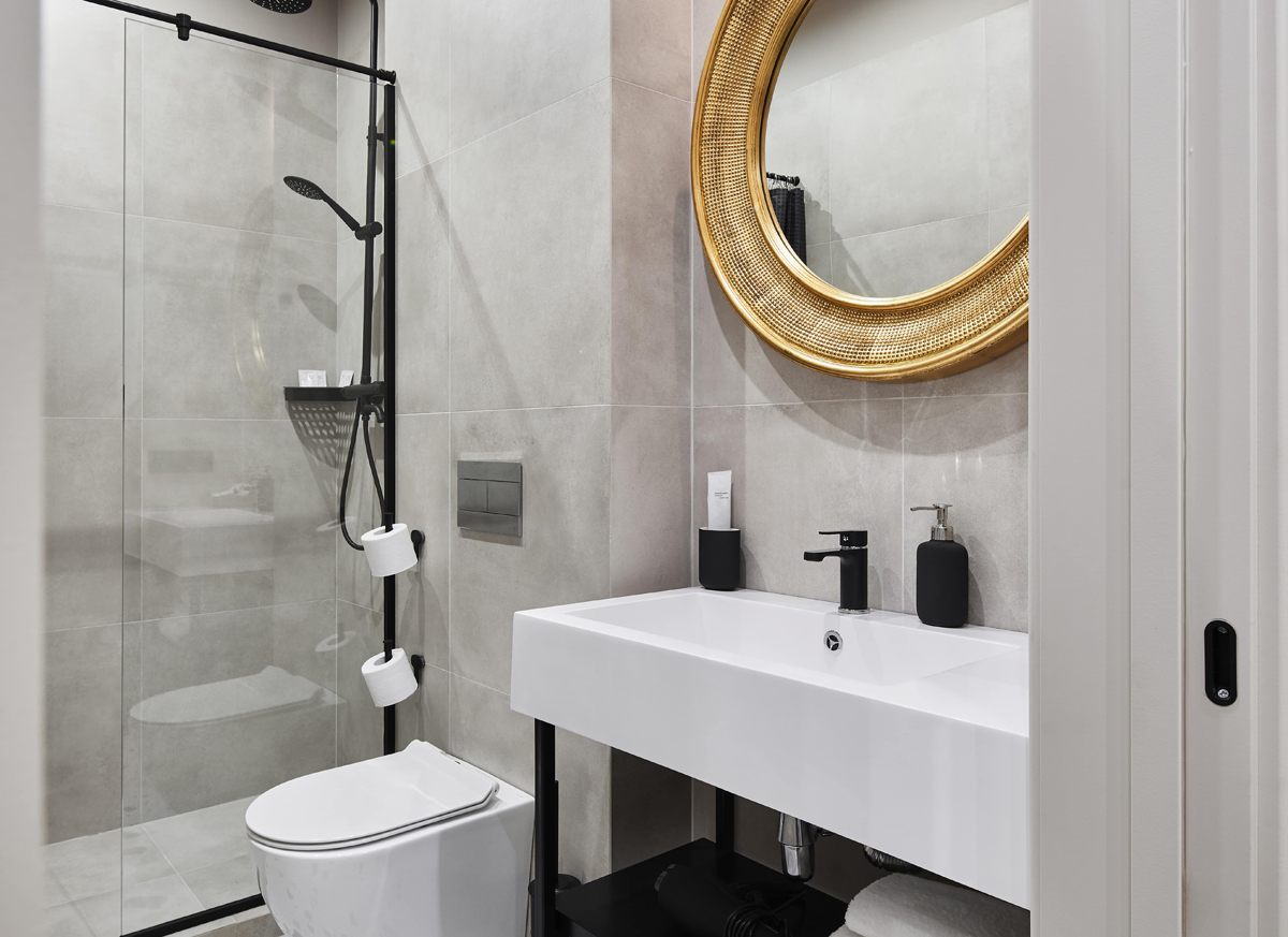 Санузел: с душевой кабиной, туалетные принадлежности, фен