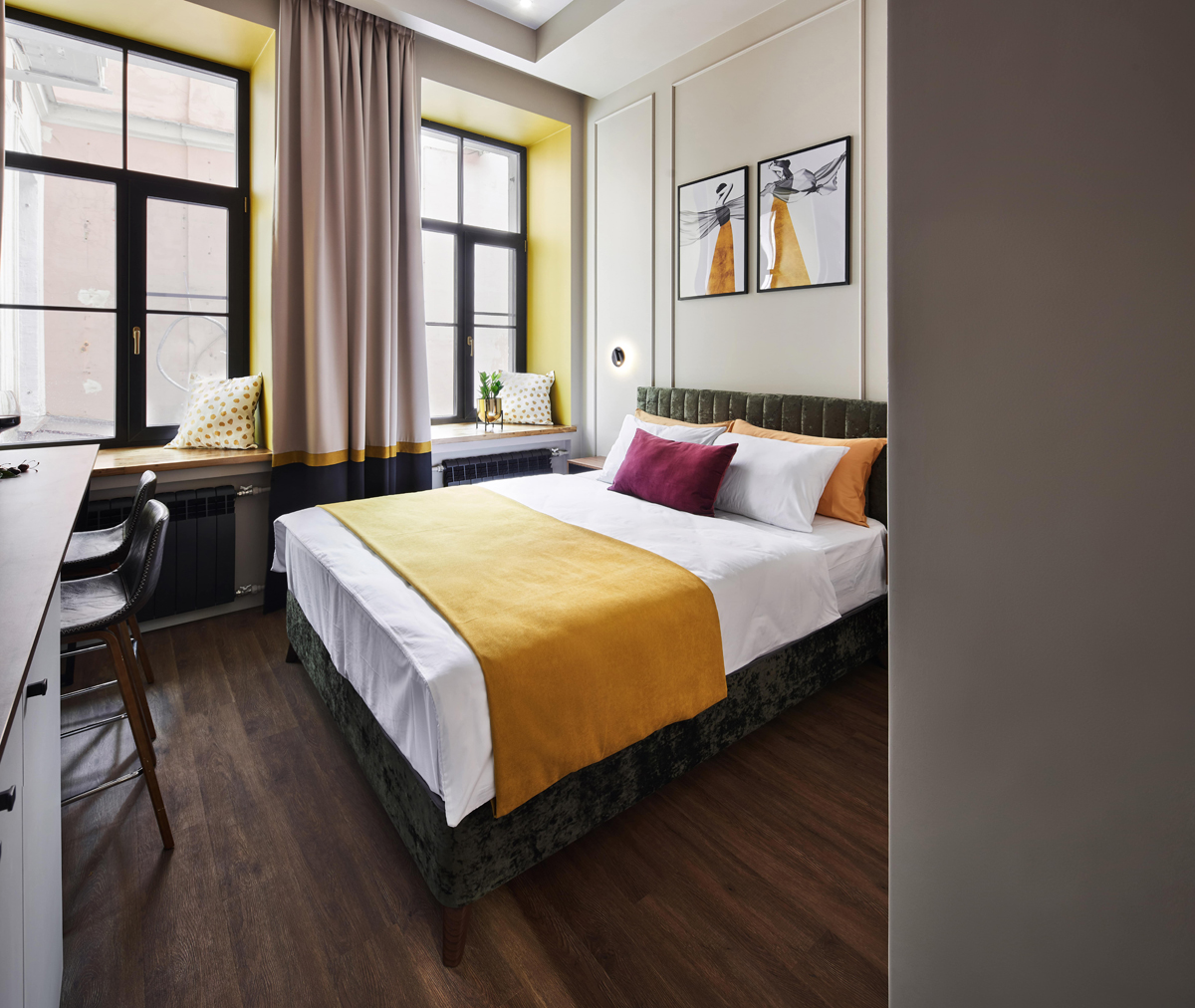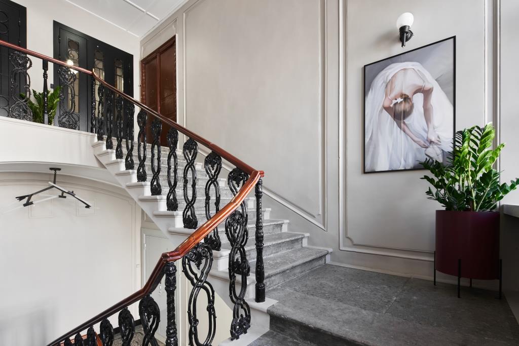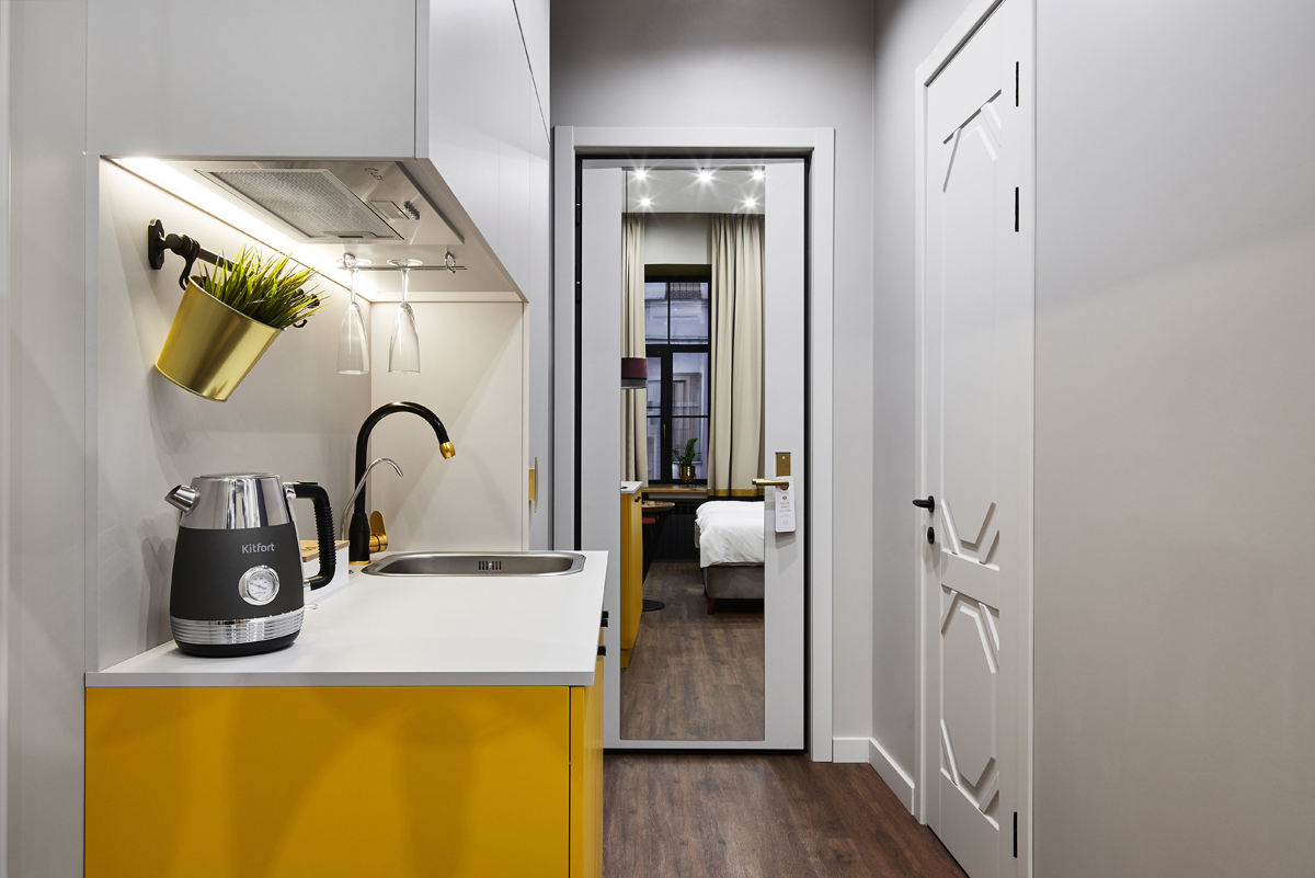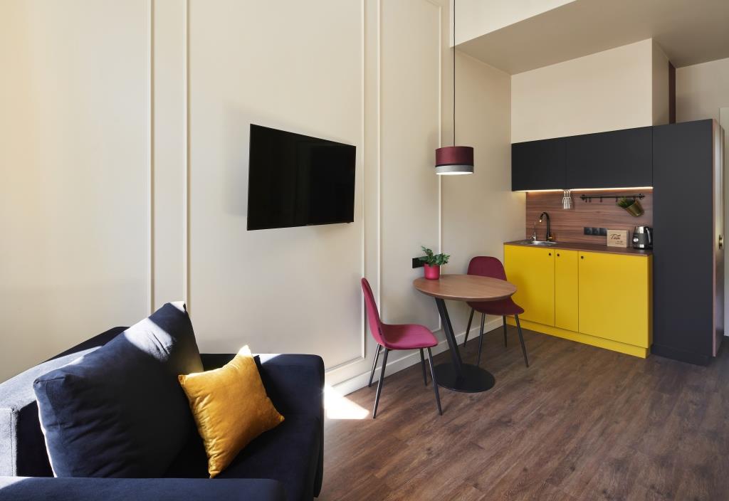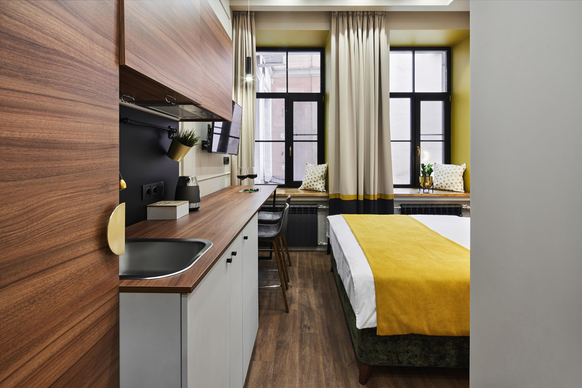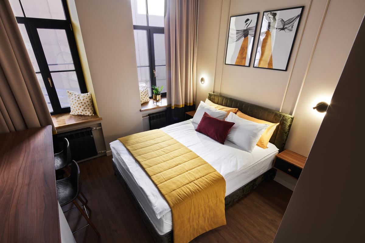 Отель занимает часть четырехэтажного исторического здания, расположенного на Невском проспекте. Жилой фонд — небольшой, гостям предлагается только 18 номеров, однако, все номера уютные со стильным современным интерьером, выдержанном в приятной цветовой гамме. В каждой комнате имеется индивидуальный санузел с душем, установлен кондиционер, есть необходимая техника — телевизор, фен, электрочайник, из некоторых номеров открывается вид на Невский проспект.В отеле работает кафе, где по утрам для гостей накрываются завтраки. Также среди услуг — беспроводной интернет.