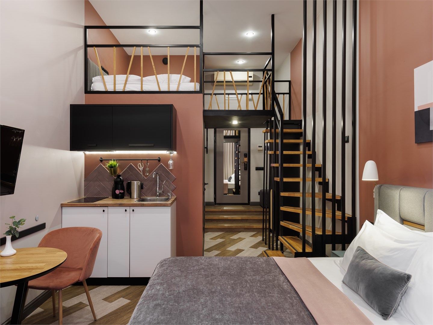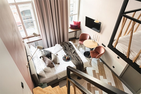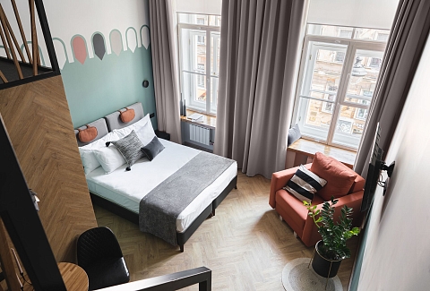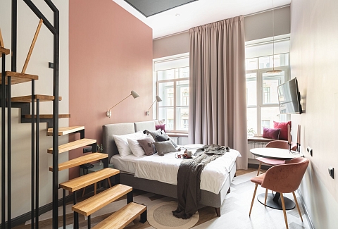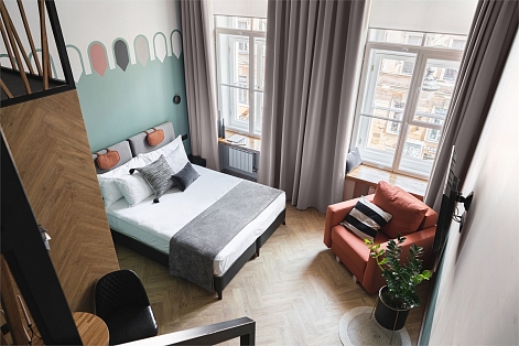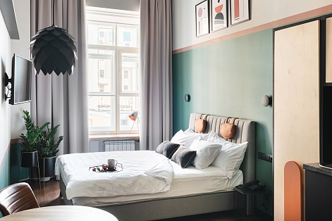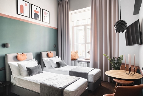Трехзвездочный отель «Калейдоскоп» расположен в центре Санкт-Петербурга всего в 300 метрах от знаменитого Невского проспекта и в 5—6 минутах ходьбы от метро Владимирская. До Казанского и Исаакиевского соборов, Дворцовой площади, Русского музея и других достопримечательностей можно прогуляться пешком или доехать на транспорте.Отель занимает часть четырехэтажного исторического здания, расположенного на главной барной улице Петербурга — на улице Рубинштейна. Гостей ожидают 2-х местные комфортабельные номера, часть из них имеют два уровня.