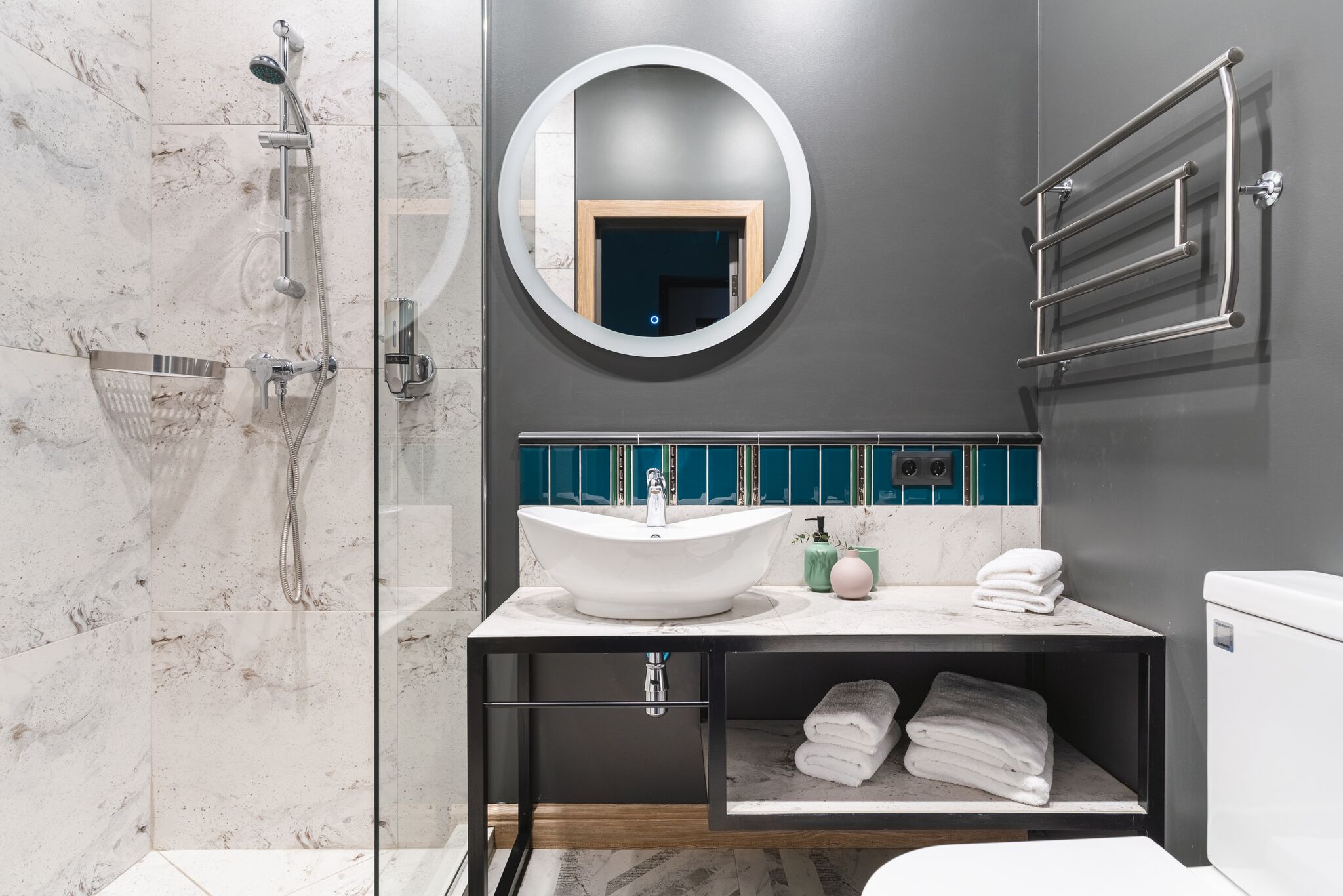 Санузел: с душевой кабиной, туалетные принадлежности, фен