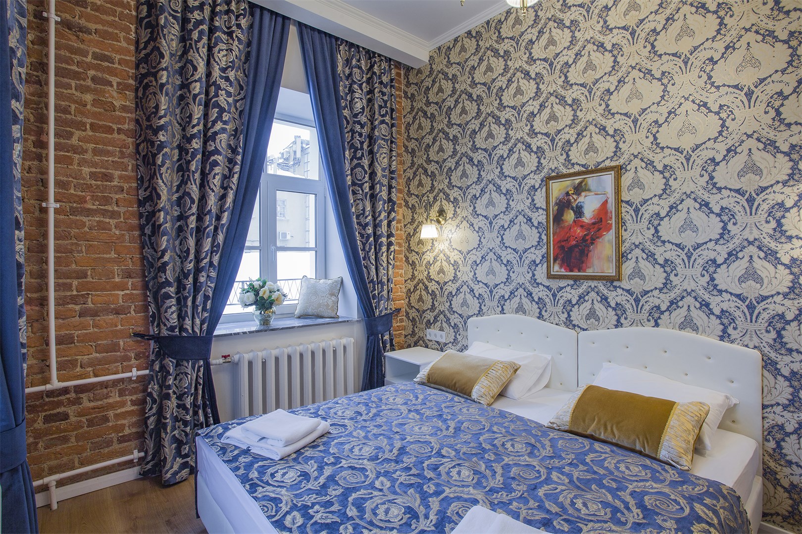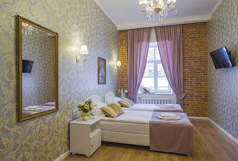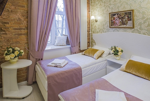 Самолетом до аэропорта Пулково, далее на автобусах №39, 39K до метро Московская. Затем от м. Московская (синяя ветка) до м. Невский проспект (выход на канал Грибоедова). При выходе из метро нужно повернуть налево. Отель находится во дворе Базилики Святой Екатерины. От метро идти ~ 1 минуту пешком.