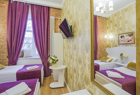 Поездом до ж/д вокзала Московский, далее на троллейбусе №5 до остановки «Станция метро Невский проспект», далее пешком ~ 3 минуты до отеля.