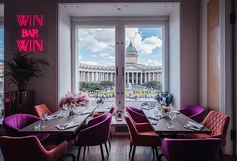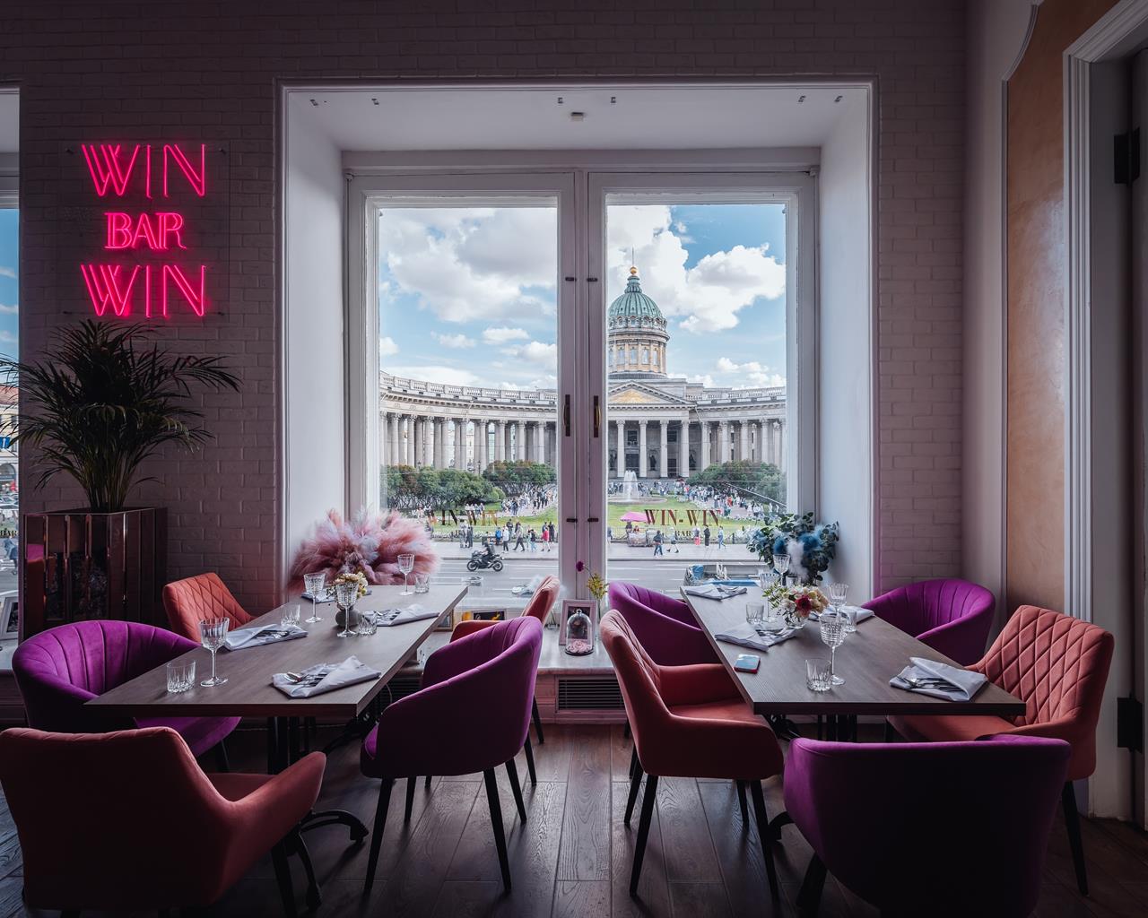Отель располагается в историческом пятиэтажном здании, выстроенном в стиле эклектика, которое возвышается на углу Невского проспекта и Малой Конюшенной улицы. Вдоль Невского проспекта здание отеля примыкает к известному дому с куполом компании «Зингер». Жилой фонд включает в себя 47 номеров различных категорий: есть как стандартные варианты, так и номера повышенной комфортности с собственными видовыми балконами. В номерах лаконичный современный интерьер, выдержанный преимущественно в пастельных оттенках. Везде предусмотрен индивидуальный санузел с душем, установлена сплит-система, в комнатах есть телевизор, электрочайник, кофемашина, доступен беспроводной интернет. На втором этаже отеля расположился видовой ресторан-бар WIN-WIN, из его окон открываются красивые виды на визитную карточку Петербурга — Казанский кафедральный собор.