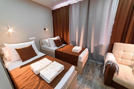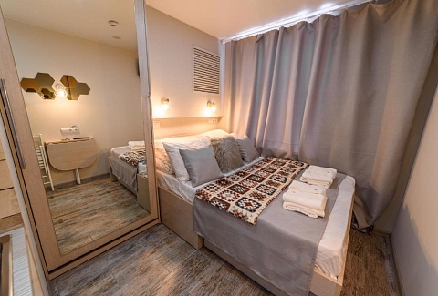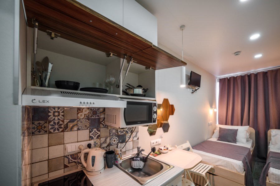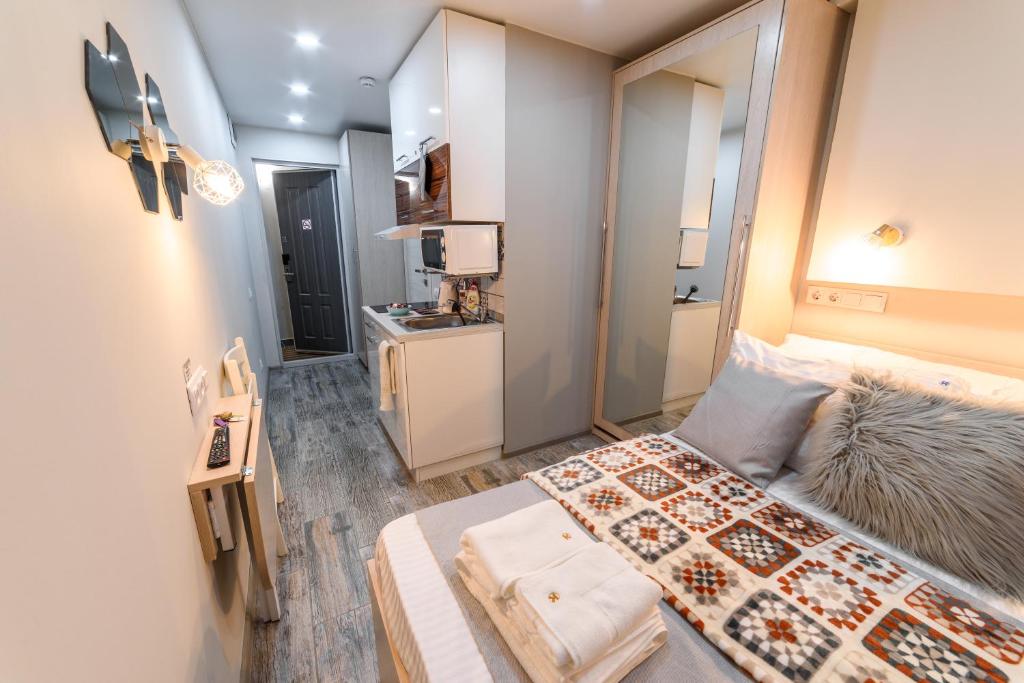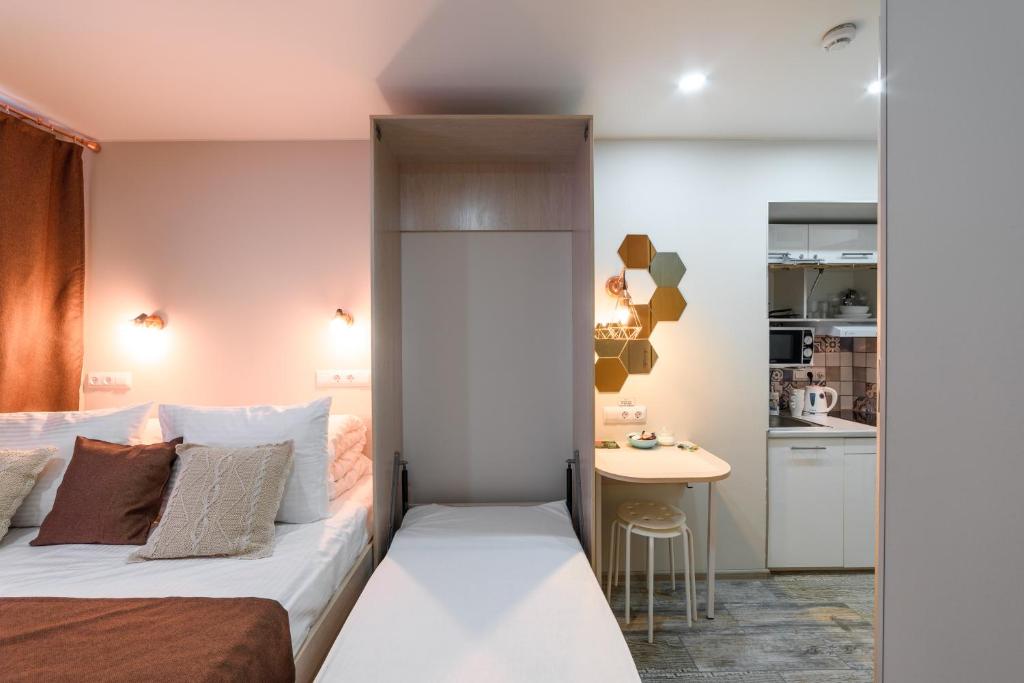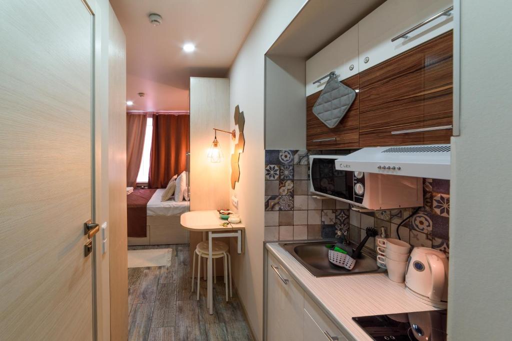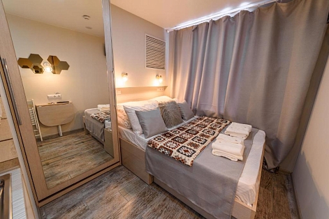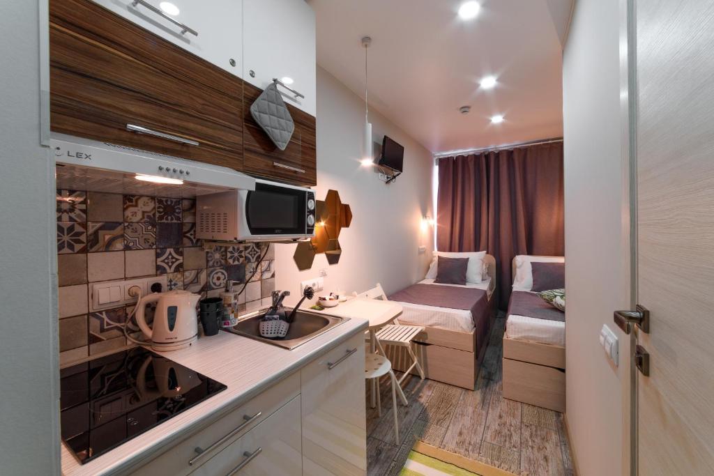 В распоряжении гостей уютный квартиры-студии, оборудованные собственной мини-кухней. В номерах есть плазменный телевизор, вентилятор, санузел с душем, где отдыхающих ожидают тапочки и наборы косметических принадлежностей.При наличии свободных мест автовладельцам доступна парковка, также на всей территории отеля доступен беспроводной интернет.