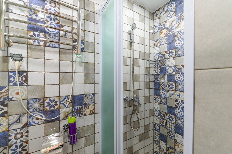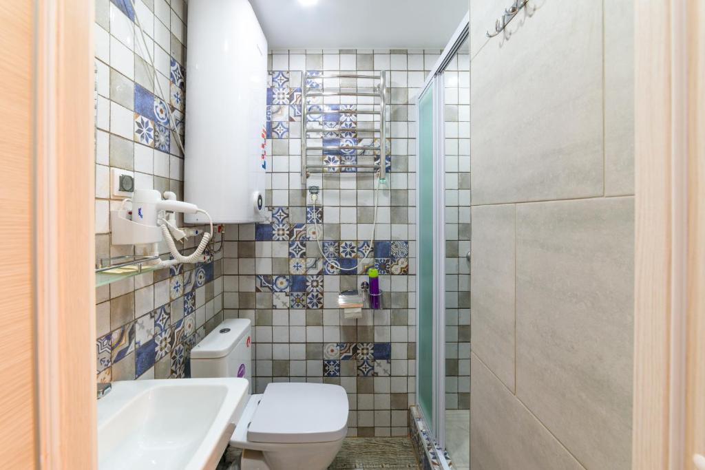 Санузел: с душем, тапочки, туалетные принадлежности, фен