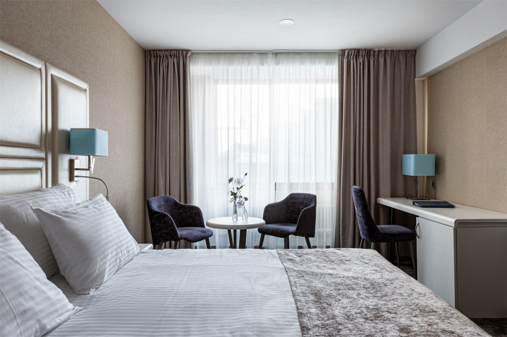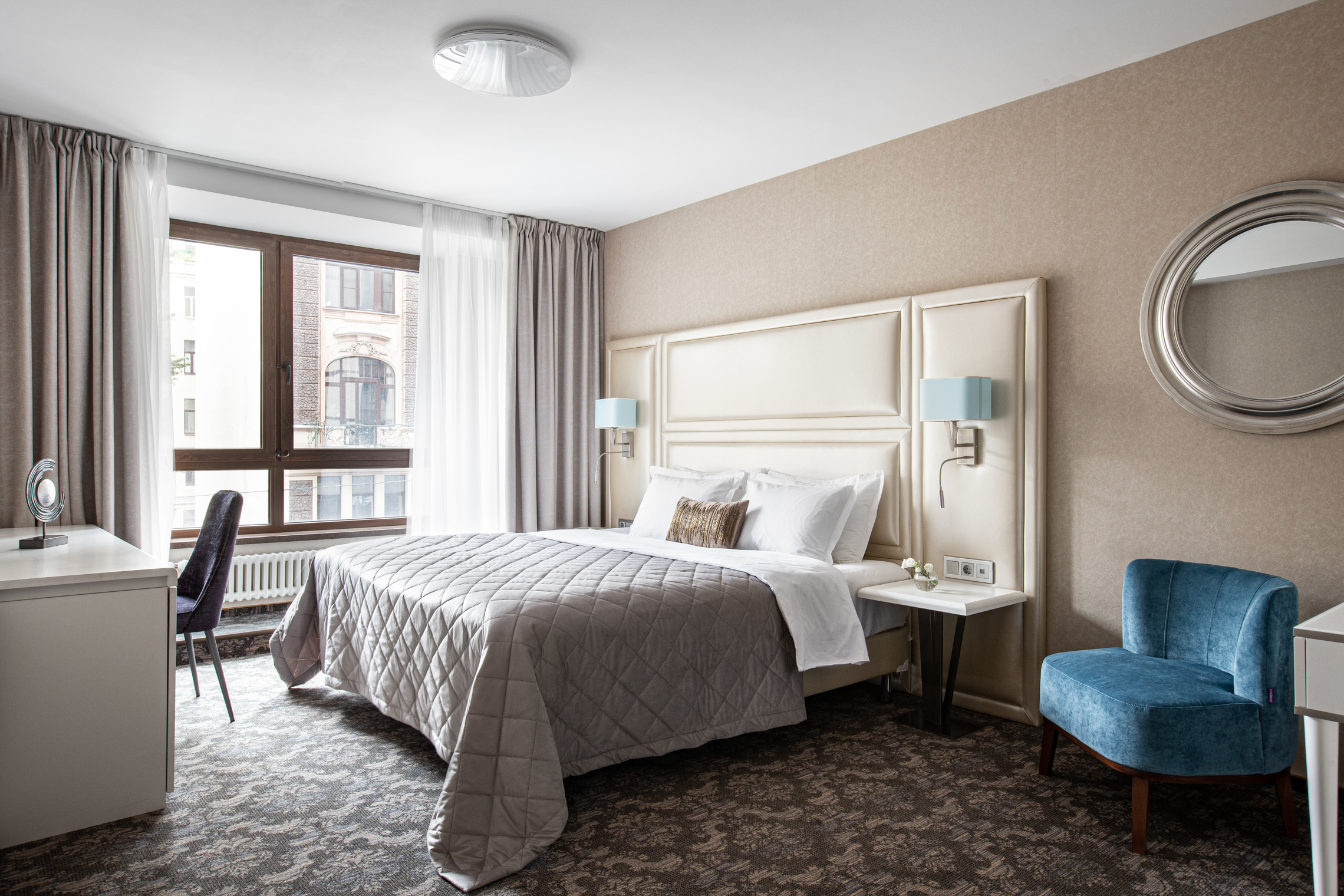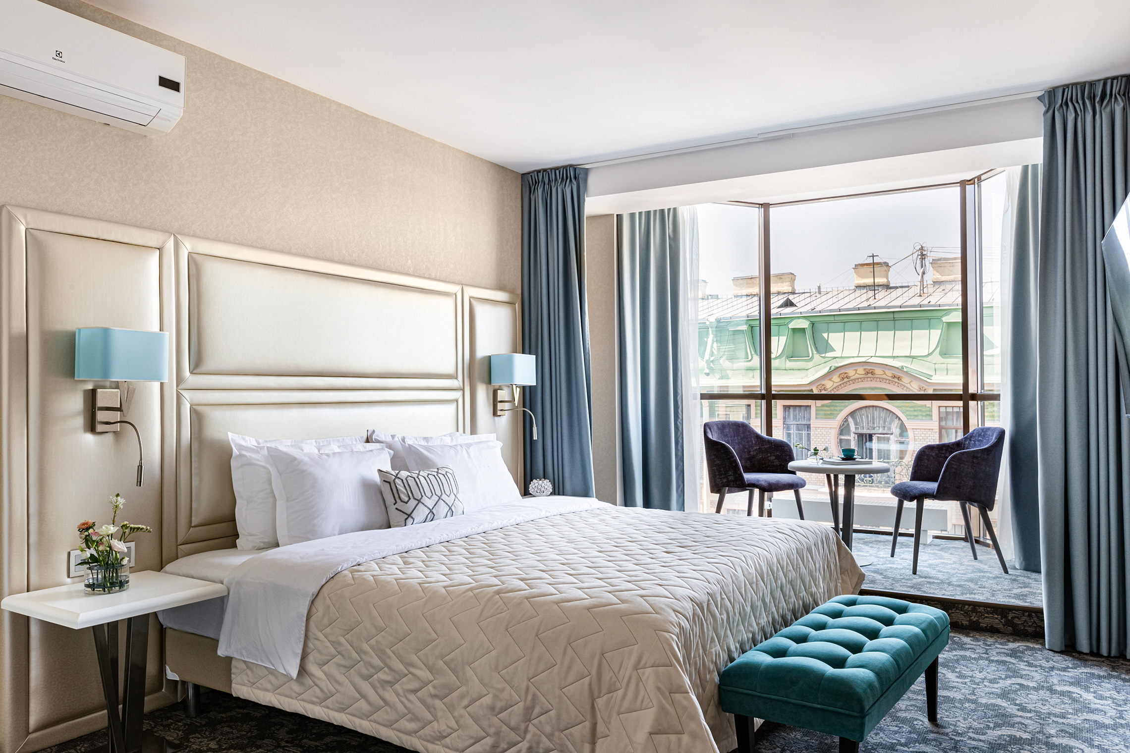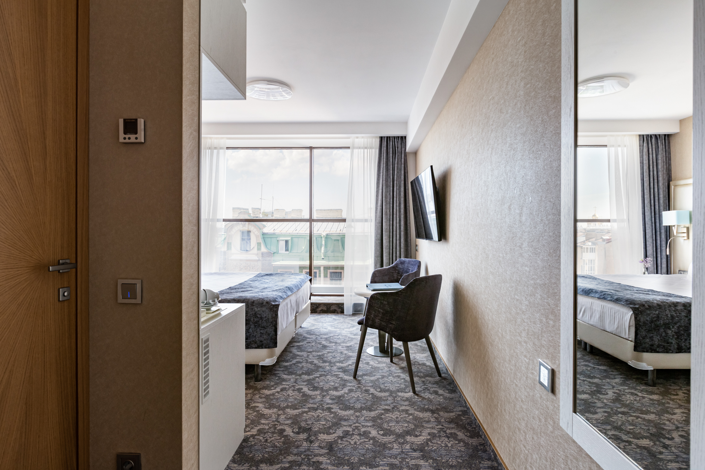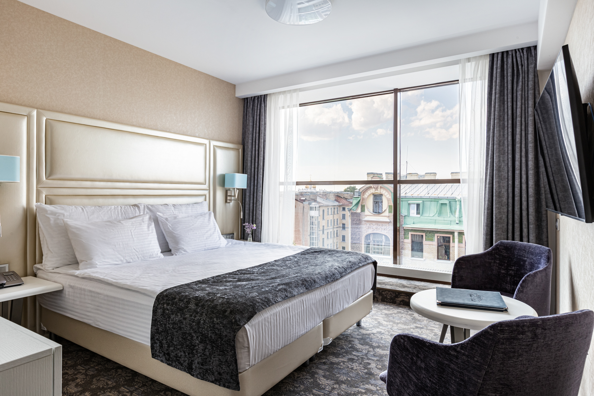 Современное семиэтажное здание отеля расположено на тихой небольшой улице. Жилой фонд предлагает номера разных категорий комфорта и разной вместимости: есть стандартные небольшие комнаты, а есть просторные роскошные номера с панорамными видами и террасой. В комнатах преимущественно классический интерьер, выдержанный в пастельных оттенках. Везде есть кондиционер, плазменный телевизор, электрочайник, санузел с ванной или душем, где для гостей подготовлены косметические наборы, халаты и тапочки. В отеле работает ресторан, также среди услуг — крытая охраняемая парковка, беспроводной интернет и конференц-зал, оснащенной всей необходимой мультимедийной техникой и звуковой аппаратурой.