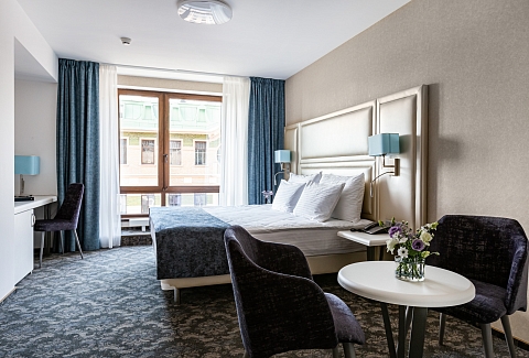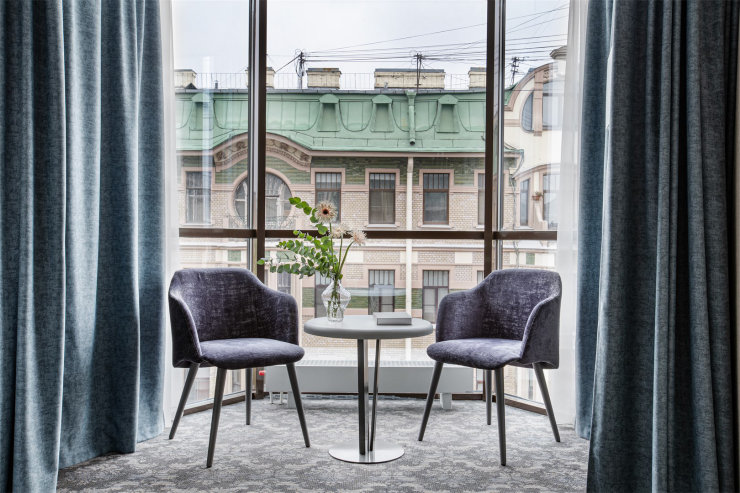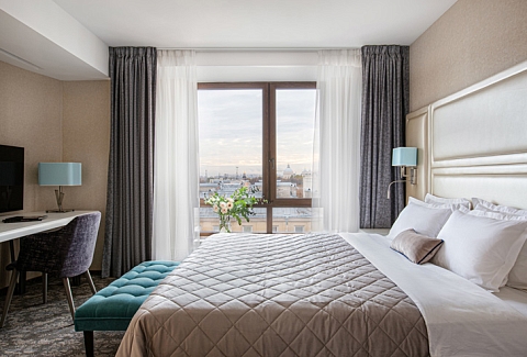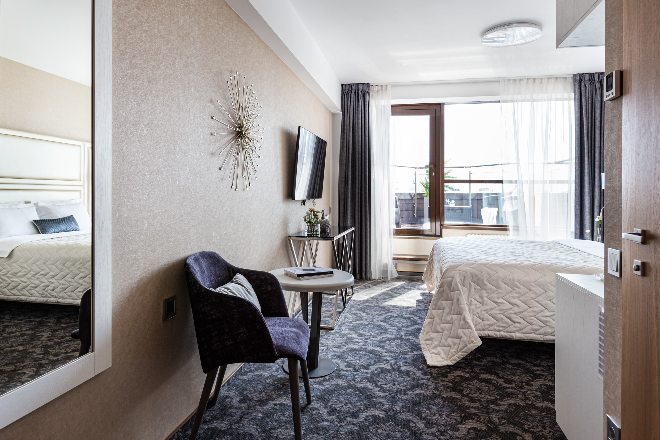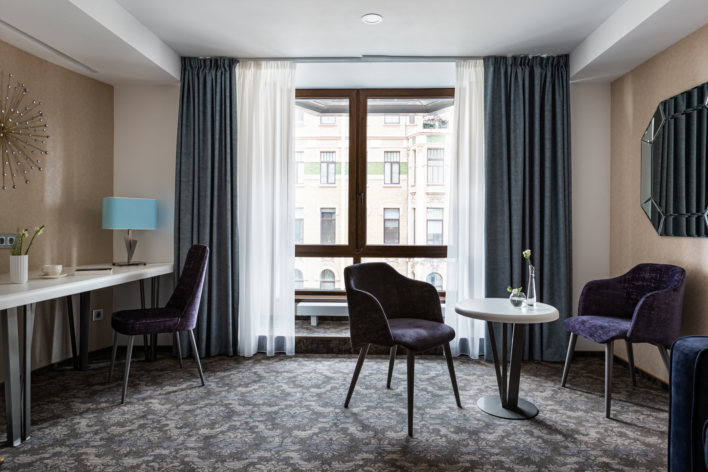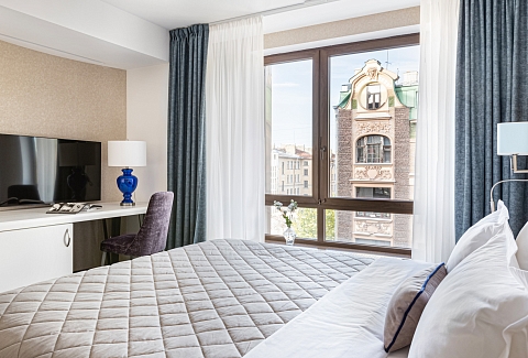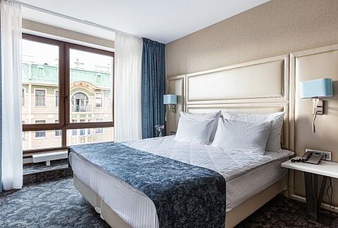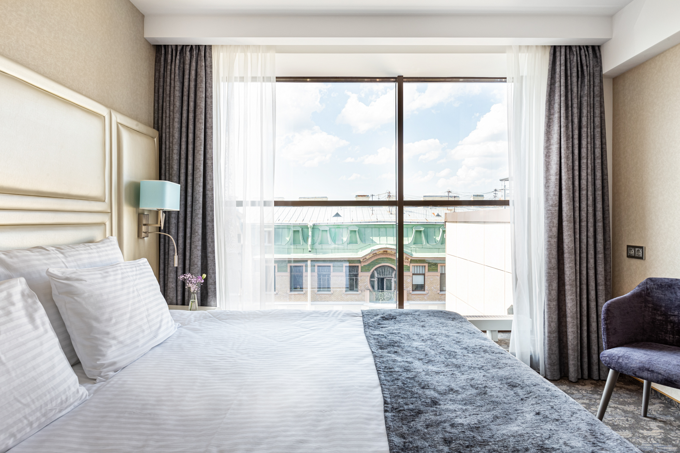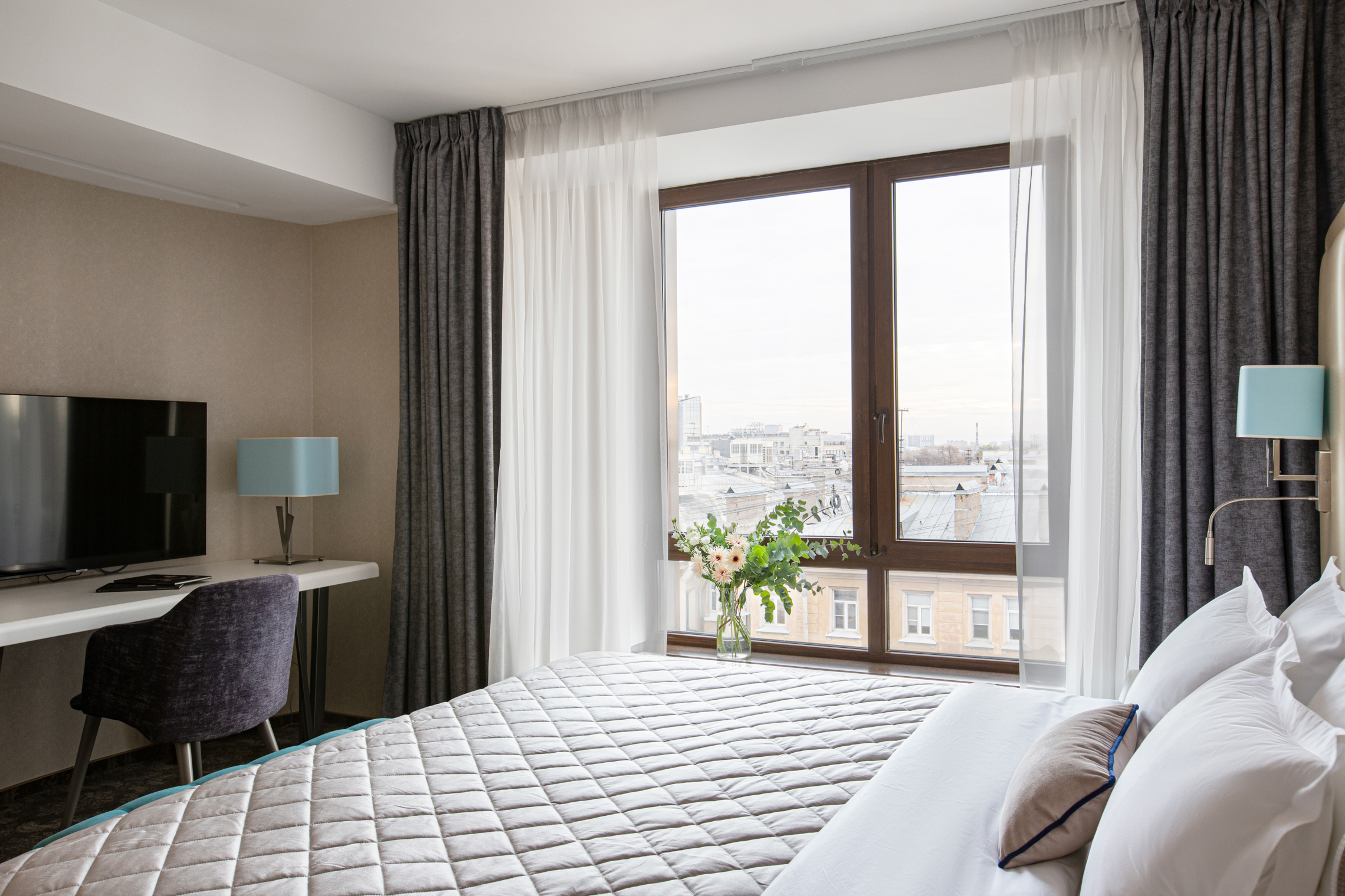 Современное семиэтажное здание отеля расположено на тихой небольшой улице. Жилой фонд предлагает номера разных категорий комфорта и разной вместимости: есть стандартные небольшие комнаты, а есть просторные роскошные номера с панорамными видами и террасой. В комнатах преимущественно классический интерьер, выдержанный в пастельных оттенках. Везде есть кондиционер, плазменный телевизор, электрочайник, санузел с ванной или душем, где для гостей подготовлены косметические наборы, халаты и тапочки. В отеле работает ресторан, также среди услуг — крытая охраняемая парковка, беспроводной интернет и конференц-зал, оснащенной всей необходимой мультимедийной техникой и звуковой аппаратурой.