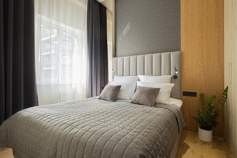 Отель предлагает 19 апартаментов с авторскими интерьерами в двух стильных направлениях, площадью от 38 до 120 квадратных метров. Современные планировки включают варианты с одной, двумя и тремя спальнями. Для гостей предусмотрен отдельный вход с охраняемой территории, а также удобный подземный паркинг. Ухоженный и безопасный двор с зелеными газонами и фонтаном, выходящий на набережную Малой Невки, близость к паркам и водоемам и доступ к торговым и развлекательным учреждениям делают «Крестовский Апарт» одним из самых заманчивых предложений в этом районе. Собственная служба отеля обеспечивает высокий уровень сервиса и готова выполнить любые просьбы гостей: от трансфера до организации морских прогулок.