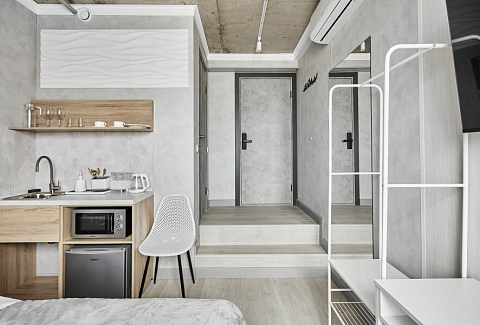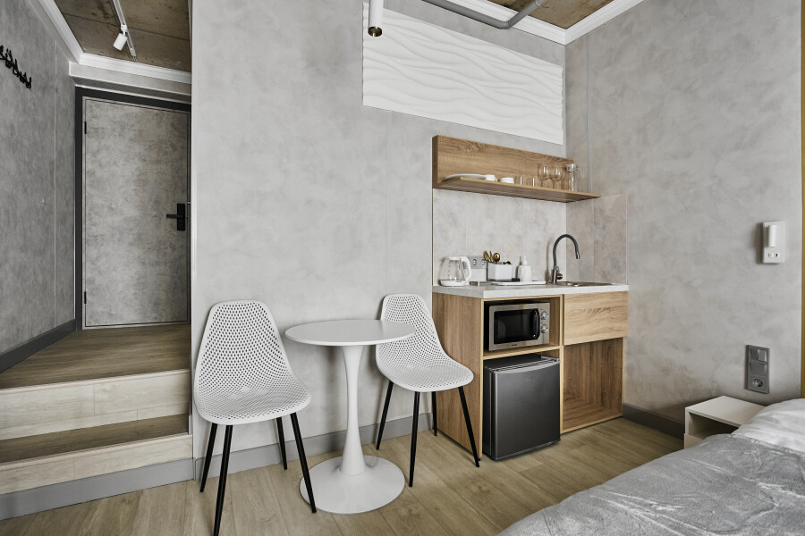 Каждый номер — отдельная композиция: лаконичные линии, натуральные текстуры, приглушённый свет и ощущение лёгкости, будто вы парите над городом. В основе — современные кровати с ортопедическими матрасами, мини-кухня с техникой и посудой, санузел с качественной сантехникой, Smart TV и высокоскоростной Wi-Fi. Отель работает в режиме тихого гостеприимства: заселение — бесконтактное, через цифровые ключи, круглосуточно. В номерах — всё необходимое для самостоятельного проживания. Персонал не вторгается и не назойлив — помощь оказывается по запросу, быстро и без излишней формальности. В здании — тихие коридоры, продуманная шумоизоляция и отсутствие лифта, что подчёркивает камерность и уют масштаба «дома».KUMO HOTEL - это приглашение замедлиться, вдохнуть глубже и почувствовать Петербург не как маршрут, а как пространство для вдохновения.