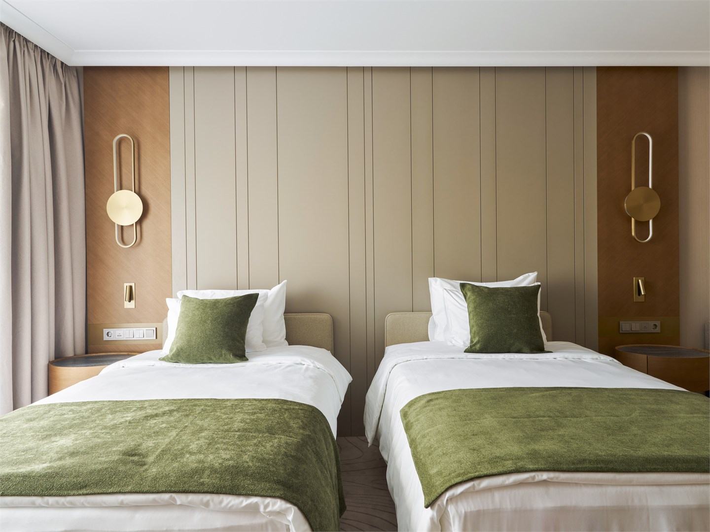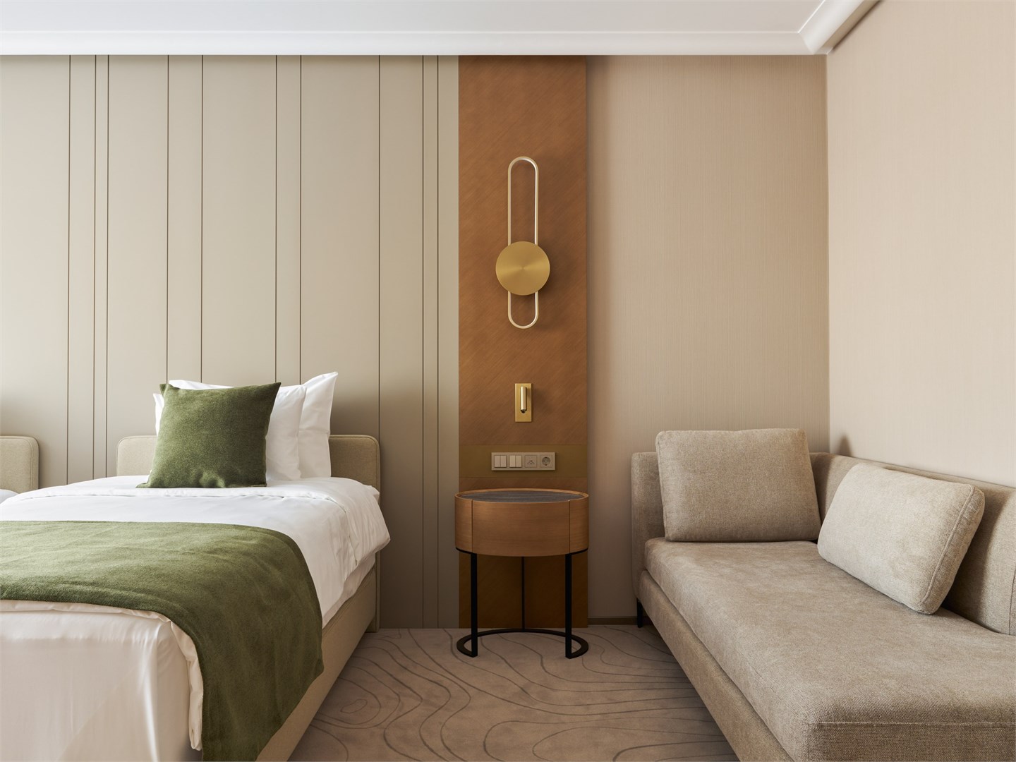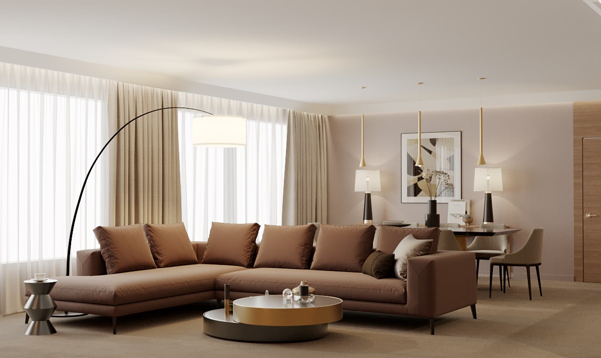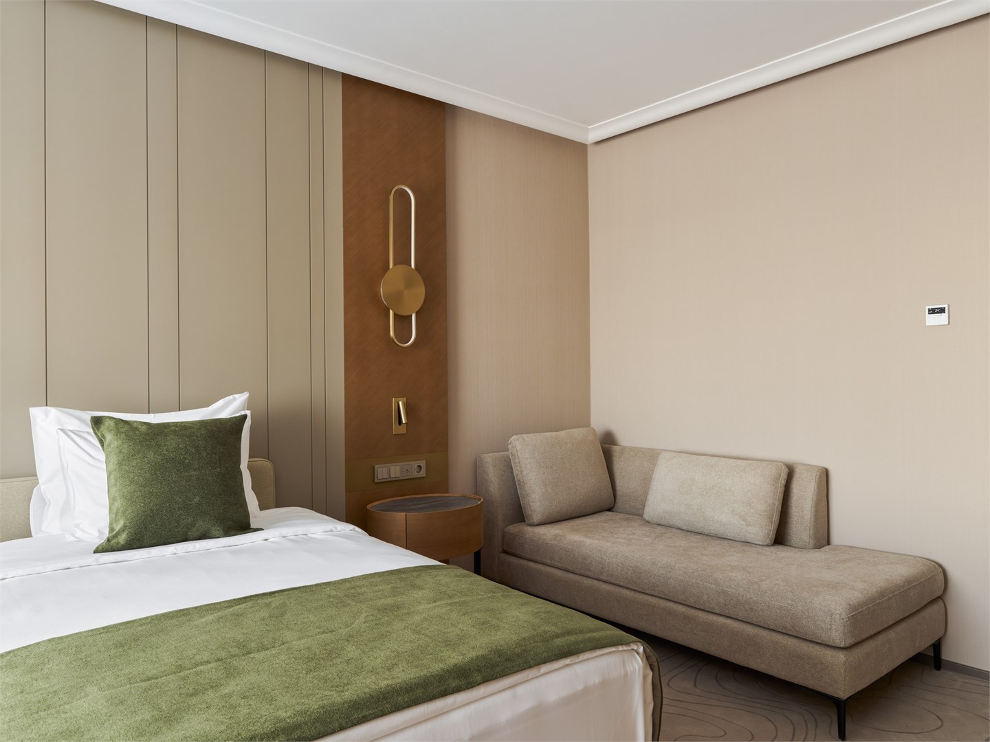 В номере: вешалка, диван, зеркало, кресло, кровать двуспальная, прикроватные тумбочки, стол, стулья, шкаф, гладильная доска, кондиционер, кофемашина, микроволновая печь, мини-холодильник, набор посуды, посудомоечная машина, сейф, телевизор, телефон, утюг, электрочайник