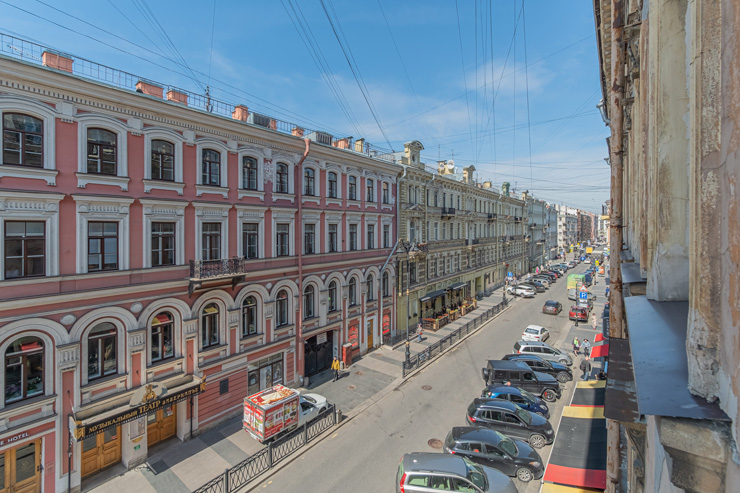 Самолетом до аэропорта Пулково (г. Санкт-Петербург), далее на рейсовом автобусе №39 до остановки «ул. Авиационная», далее на метро до станции «Технологический институт-2», далее на метро до станции «Владимирская», далее пройти пешком 480 м до отеля.