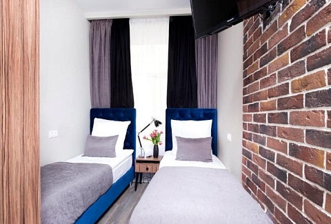 В распоряжении гостей комфортабельные номера разных категорий комфорта с интерьером в стиле лофт. В каждом номере имеется санузел с душем, кондиционер, есть кровать с эргономичным матрасом, электрочайник, фен.На телефон приходит код доступа в номер. На каждой двери номера установлен «умный» замок с кодом, поэтому заселиться гости могут в любое время, не ожидая администратора.
