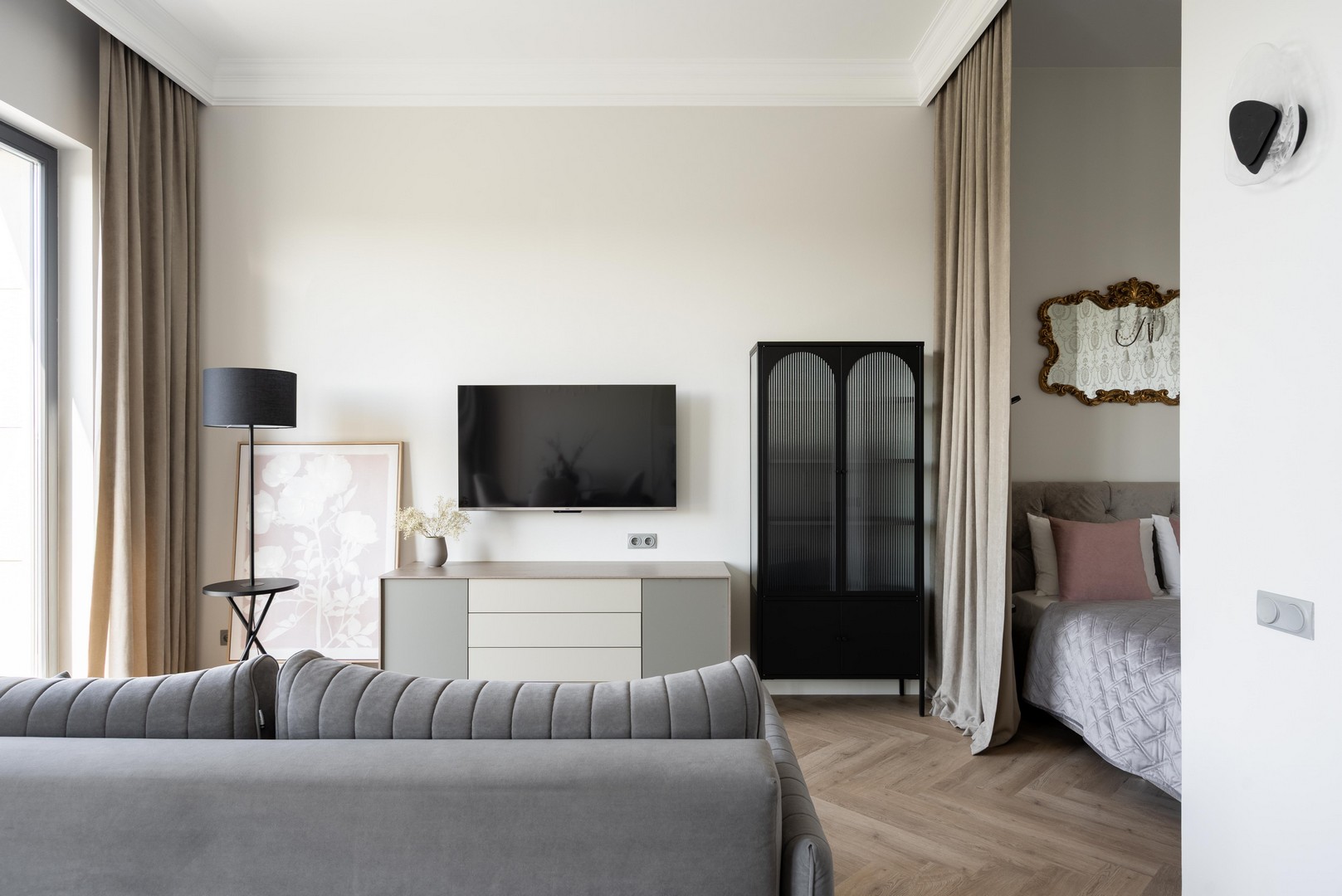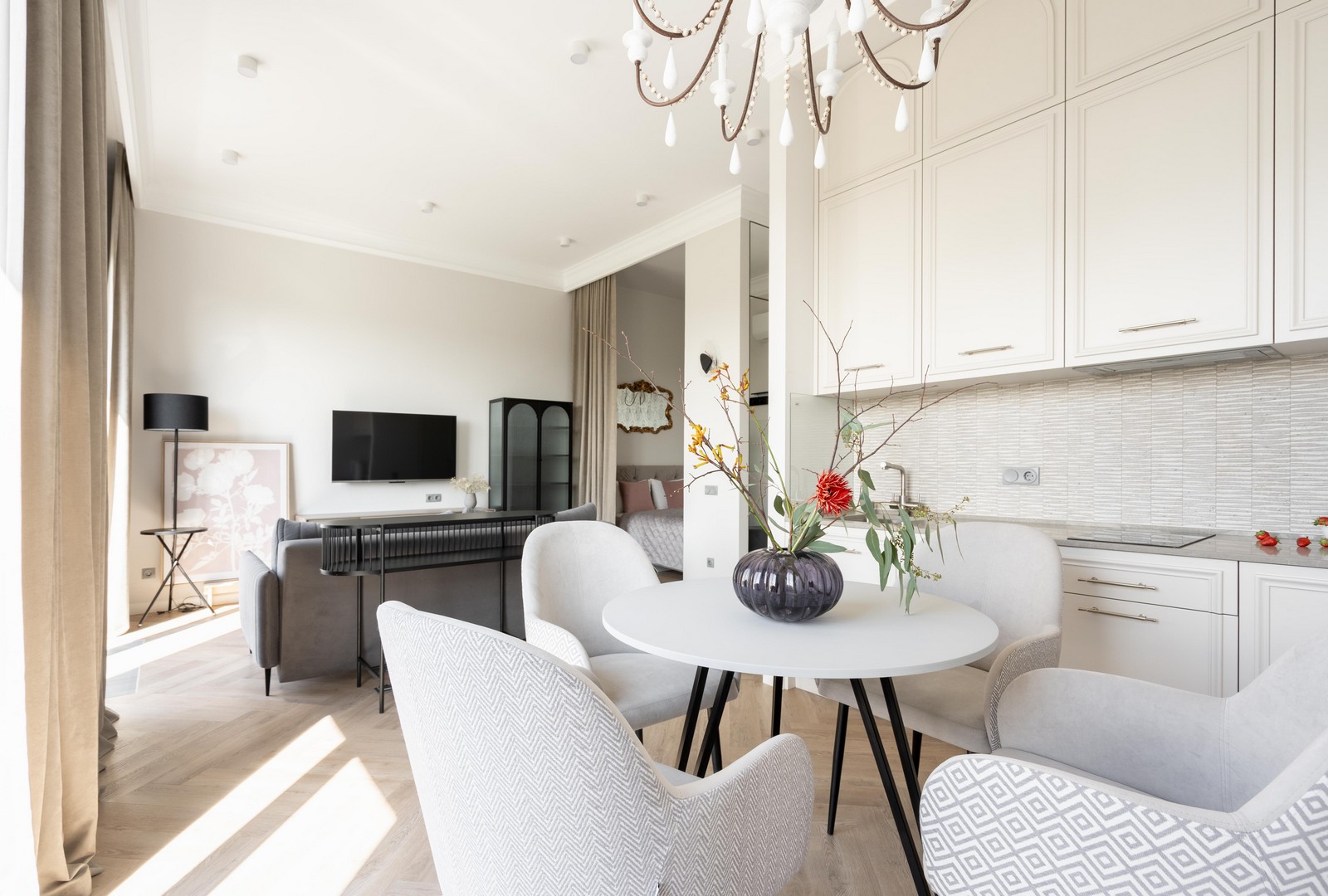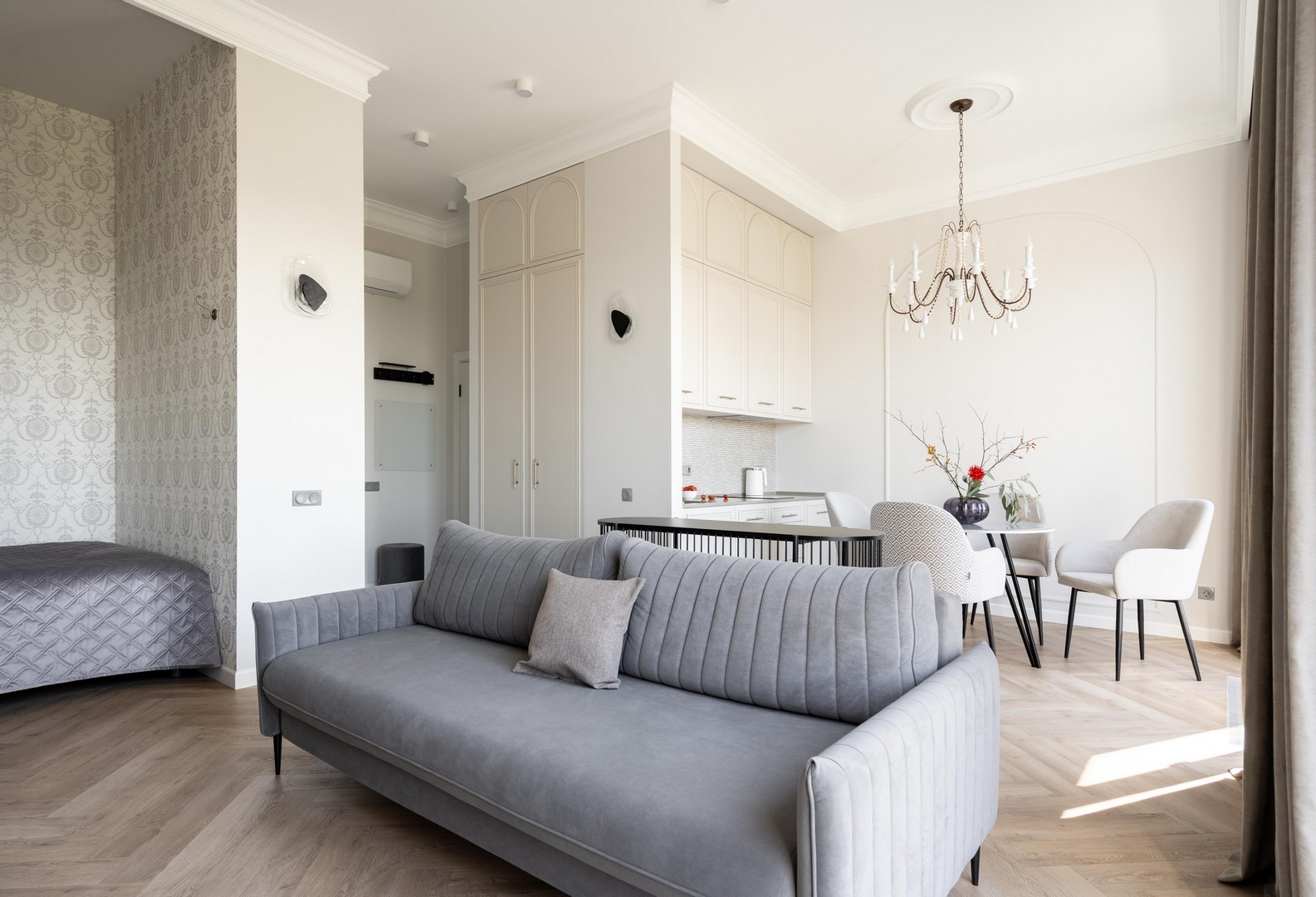 Компактная гостиная с удобной мебелью, телевизор, интернет Wi-Fi, полностью оборудованная кухонная зона со всей необходимой бытовой техникой, санузел с современной сантехникой и душевой, стиральная машина, гладильные принадлежности. В апартаментах выполнен качественный ремонт, используется только современное оборудование, что создает ощущение настоящего уюта.