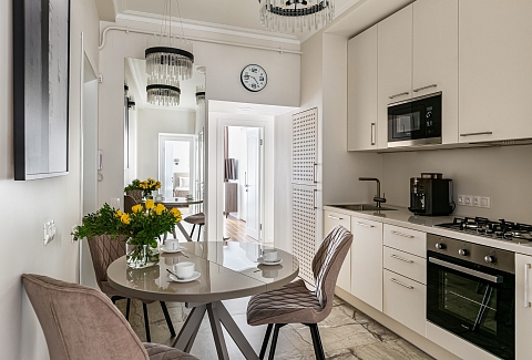 Апартаменты «Letyourflat Benua» в самом сердце города Санкт - Петербурга — во главе Невского проспекта, вблизи Дворцовой площади. Свое название апартаменты получили в честь архитектора Бенуа, который на рубеже XIX-XX веков занимался перестройкой и преображением данного здания на Невском 11.Просторные апартаменты 105 квадратных местров с тремя отдельными спальнями, гостиной и кухонной зоной с комфортом вмещают до 10 человек. Здесь вы почувствуете себя как в лучшем номере отеля благодаря современному дизайну.