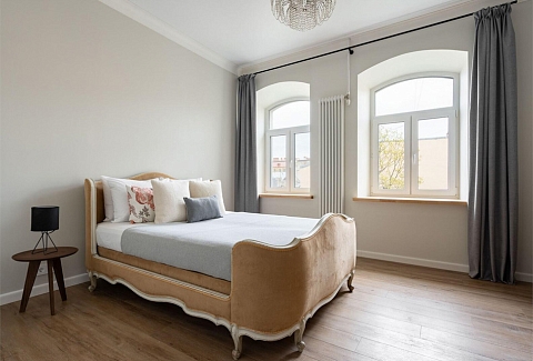 В радиусе всего тридцати минут пешком открываются маршруты к главным сокровищам: Эрмитажу, Казанскому собору, дому Зингера и сверкающим куполам Спаса-на-Крови. Буквально за углом ждёт ресторанная улица Рубинштейна, а в шаговой доступности — величественные театры города: Александринский, БДТ, Ленсовета. Московский вокзал также находится в двадцати минутах ходьбы.Простор в восемьдесят два квадратных метра, наполненный светом от четырёх окон в гостиной, создаёт ощущение свободы и покоя. Спальни, окна которых смотрят на тихий дворик, оформлены в гармоничных тонах, настраивая на глубокий отдых. Центром притяжения становится изысканная кровать, привезённая из Венеции, — её резные линии и винтажный шарм задают тон всей атмосфере, добавляя ноту европейской роскоши и путешествий. Кухонная зона, оборудованная всем необходимым для лёгкого приготовления пищи, соседствует с уютной гостиной, превращаясь в естественное место для вечерних бесед. В ванной комнате гостей ждёт всё для комфорта, включая бойлер для горячей воды в любое время дня. Расположение на пятом этаже исторического здания обеспечивает прекрасный обзор, однако стоит учесть отсутствие лифта — этот небольшой подъём становится частью погружения в аутентичную петербургскую жизнь.