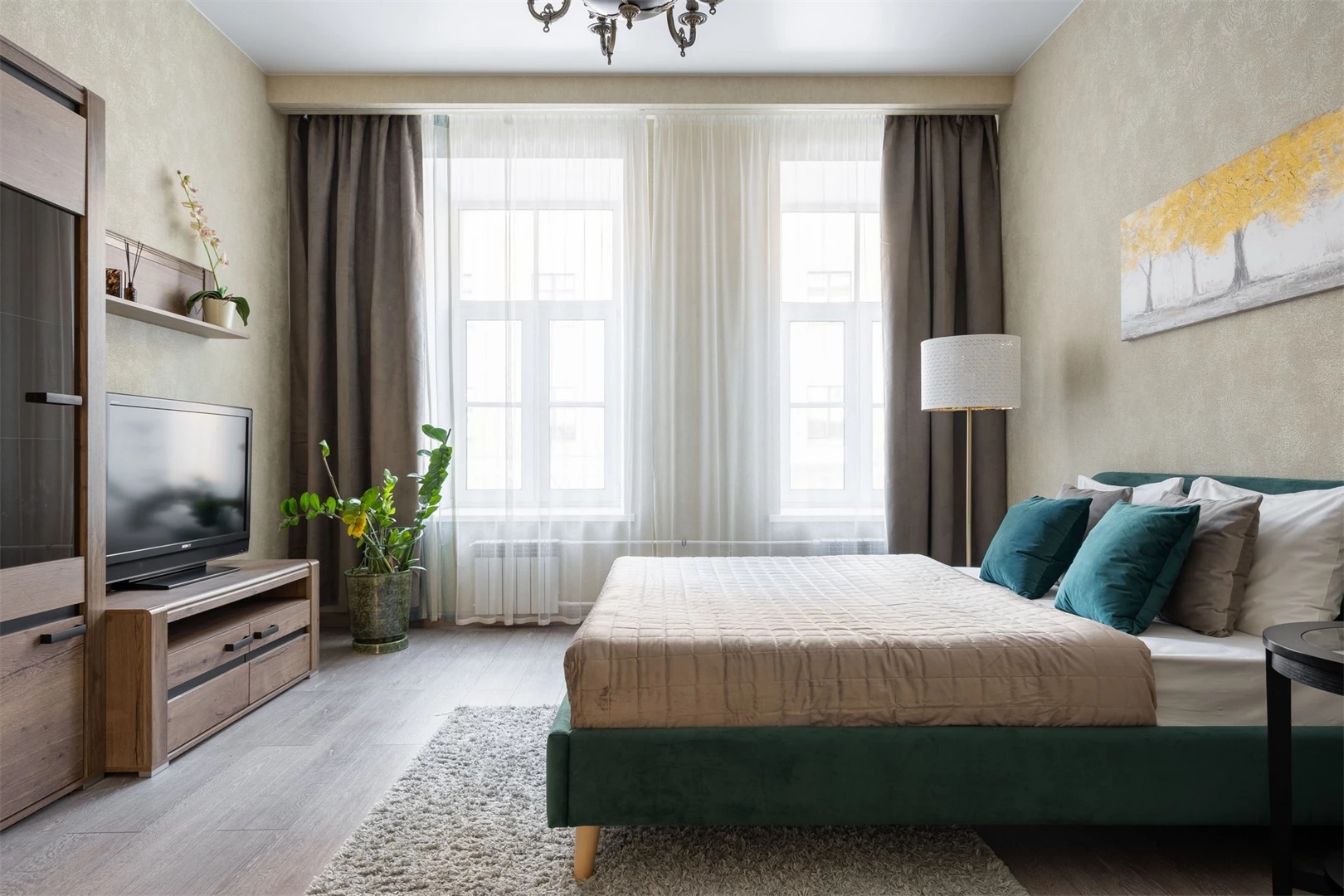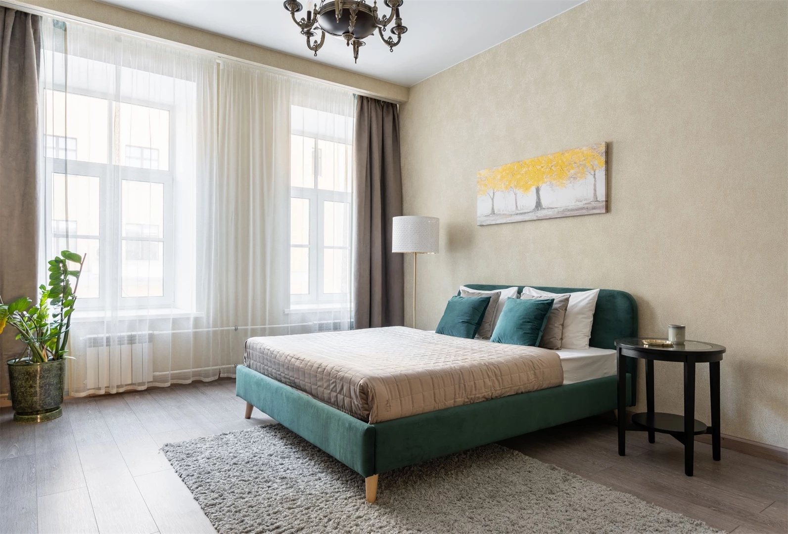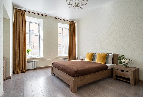 Просторные двухкомнатные апартаменты расположены в историческом центре Санкт-Петербурга, всего в пятидесяти метрах от Невского проспекта и знаменитого Аничкова моста. Несмотря на близость главной магистрали, окна выходят в тихий двор, что гарантирует спокойный отдых. Прямо напротив дома — музей Фаберже, в двух минутах пешком — популярная ресторанная улица Рубинштейна, а в десяти минутах — Итальянская улица с торговым центром «Пассаж», Манежная площадь, площадь Искусств и Русский музей.