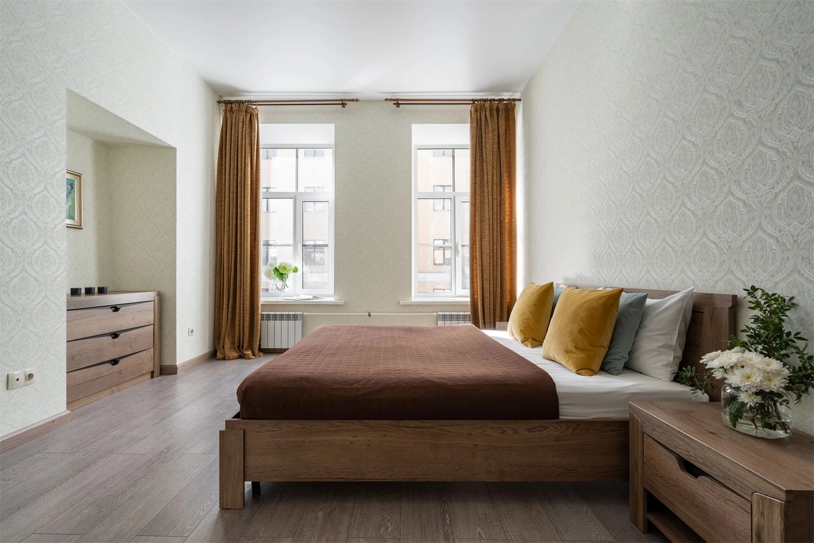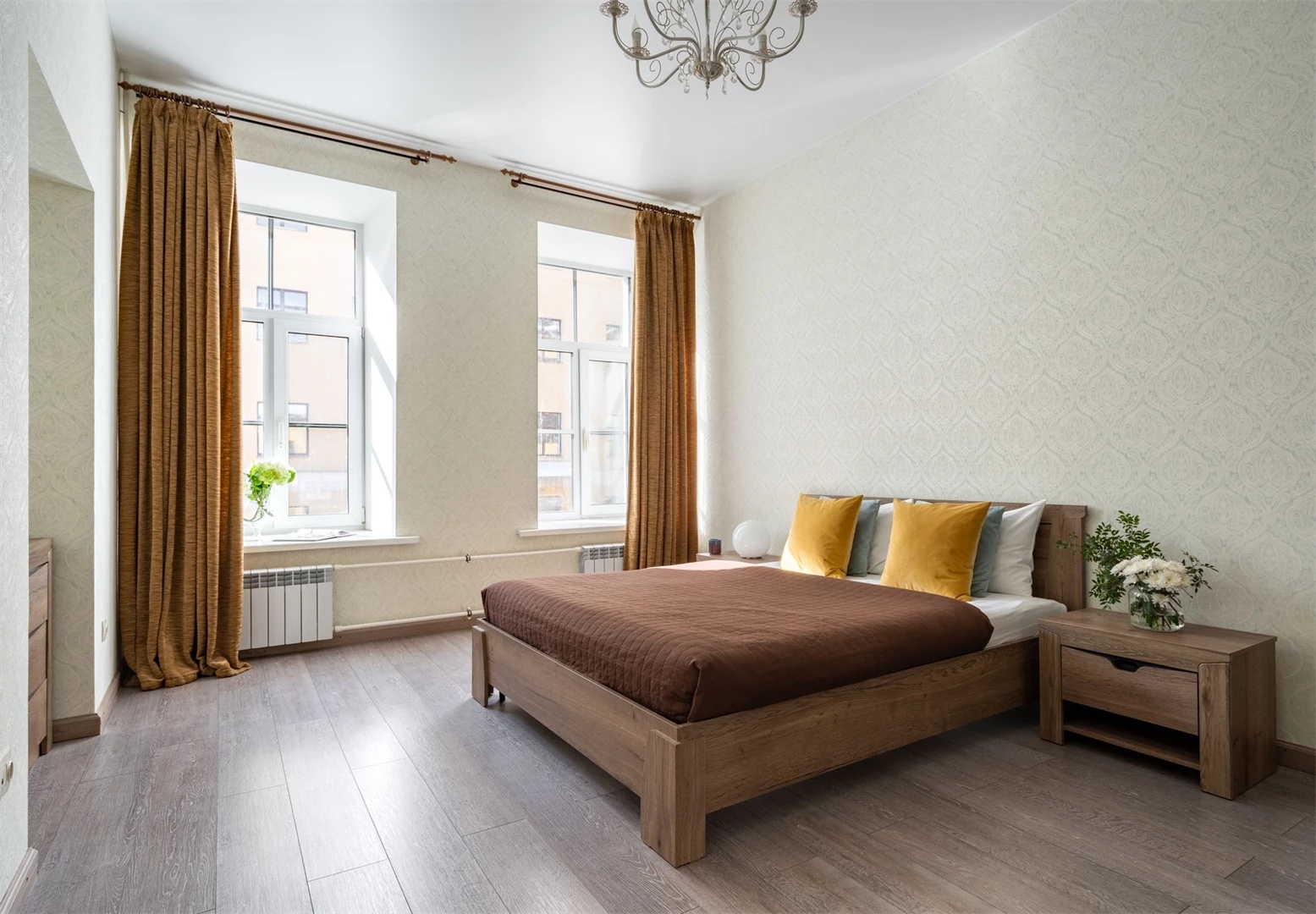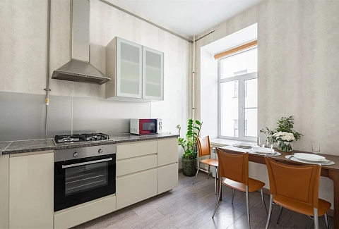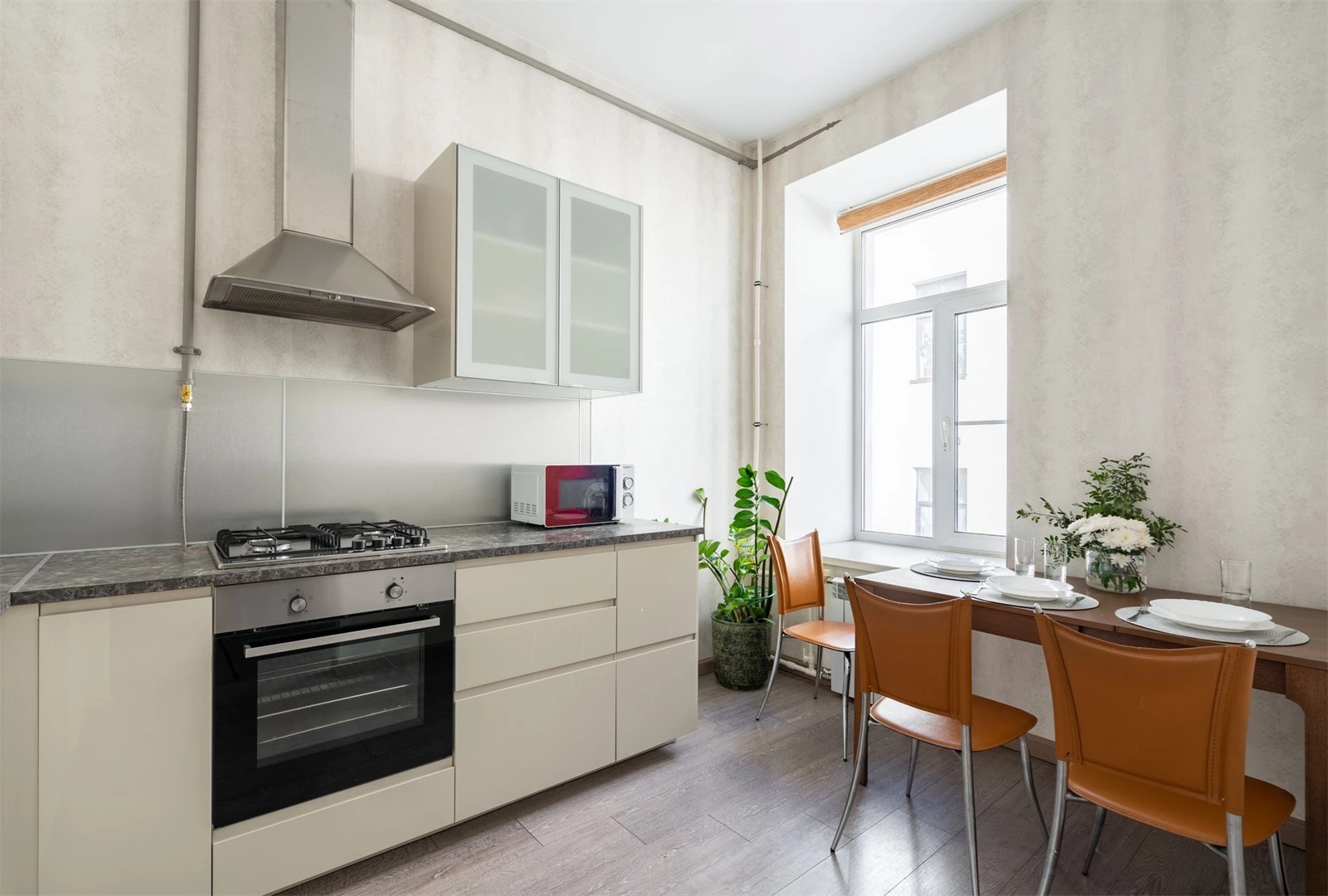 Ближайшие станции метро — «Гостиный двор» и «Маяковская», до Московского вокзала и ТЦ «Галерея» можно дойти за пятнадцать минут. Рядом с домом — остановки транспорта, магазины и множество кафе.Площадь апартаментов составляет 64 квадратных метра, пространство рассчитано на размещение до четырёх гостей. В двух отдельных спальнях установлены кровать Queen-size и удобный раскладной диван. Интерьер выполнен в современном стиле, высокие окна и потолки наполняют помещение светом. Кухня полностью оборудована всем необходимым для приготовления еды: плита, холодильник, микроволновая печь, посудомоечная машина, чайник и полный набор посуды и кухонной утвари. В ванной комнате — душевая кабина, стиральная машина, сушилка для белья, фен, утюг с гладильной доской, тапочки и банные принадлежности. Гостей ждут свежее постельное бельё, полотенца и базовая косметика. В апартаментах есть телевизор со Smart TV и бесплатный Wi-Fi.Это пространство создано для тех, кто ценит домашний уют и комфорт в самом центре города. Идеальное место для семей, пар или деловых путешественников, желающих наслаждаться лучшими местами Петербурга и возвращаться в уютное и тихое пространство после насыщенного дня.