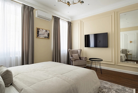 Тихий и изысканный мир открывается за дверью апартаментов LetYourFlat King. Из окон открывается вид на водную гладь Мойки, а за порогом начинаются маршруты к главным достопримечательностям и лучшим развлекательным заведениям города, делая каждую прогулку незабываемой.Просторная гостиная с панорамными окнами, полностью оборудованная кухня и удобные спальни образуют гармоничное целое, способное с комфортом разместить до шести гостей. Для каждого путешественника, будь то семья, друзья или деловая группа, это место становится идеальным убежищем в самом сердце исторического центра.Пространство обустроено с безупречной тщательностью, где каждая мелочь продумана для гостя.
