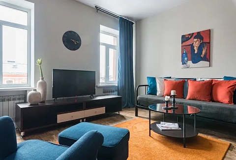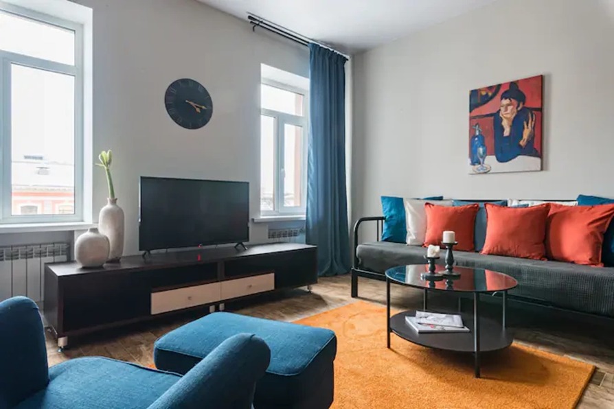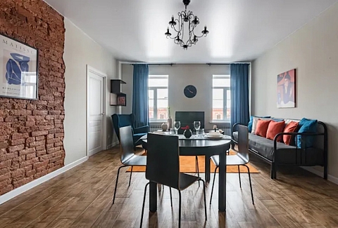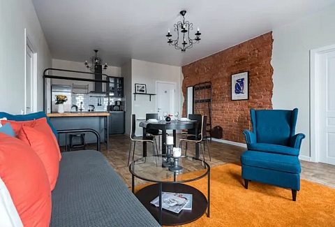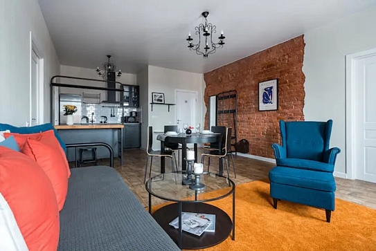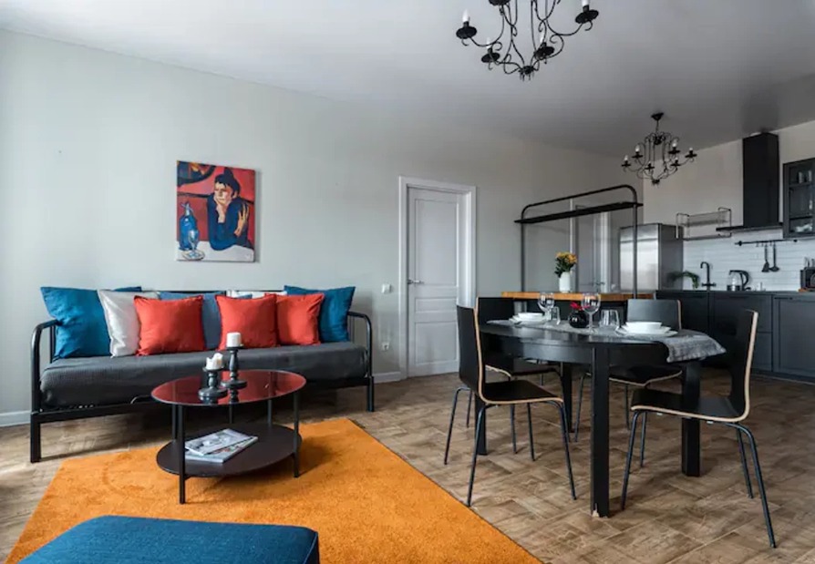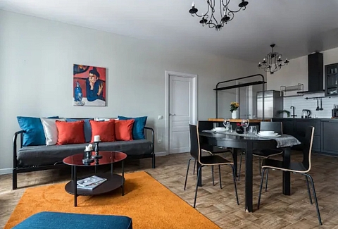 Стильные апартаменты 60м2 с новейшим ремонтом подходят для 2-6 человек; семья с детьми, две пары, компания друзей будут чувствовать себя комфортно. В квартире есть 2 спальни, ванная комната и кухня-гостиная. Просторная кухня-гостиная располагает диваном-кроватью, плоским телевизором Smart Tv, плитой и холодильником.