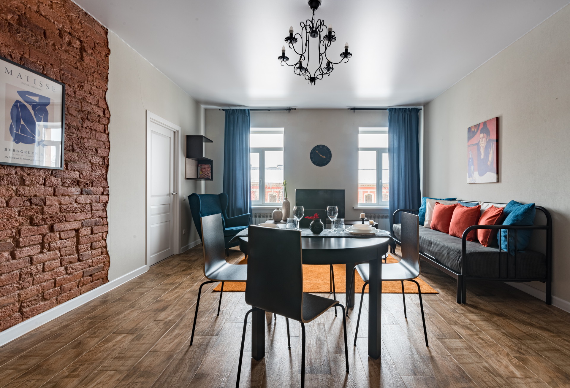 Самолетом до аэропорта Пулково (г. Санкт-Петербург), далее на рейсовом автобусе №39 до остановки «ул. Авиационная», далее на метро до станции «Площадь Восстания», далее пройти пешком 330 м до апартаментов.