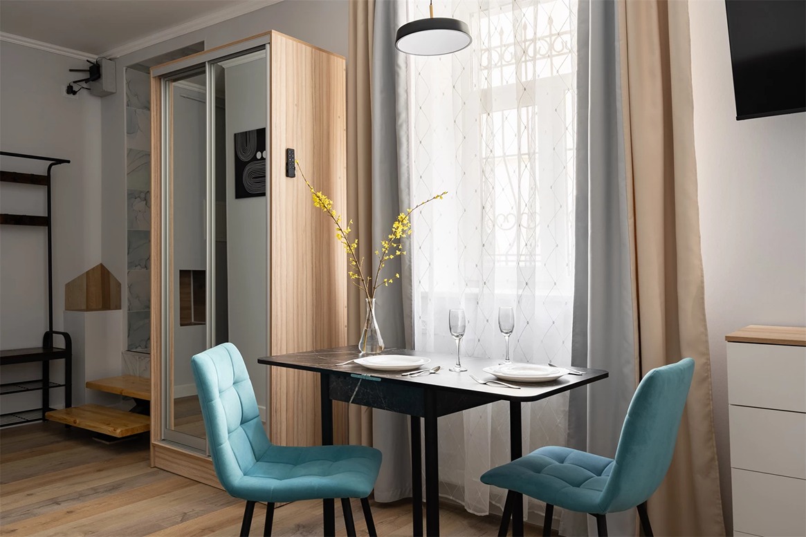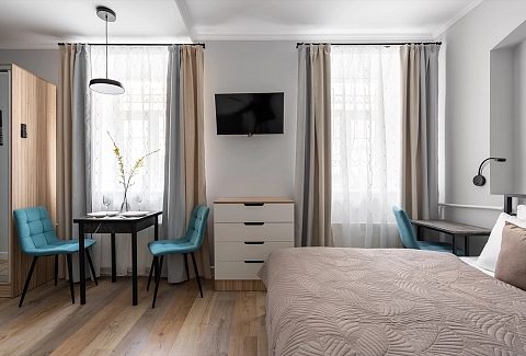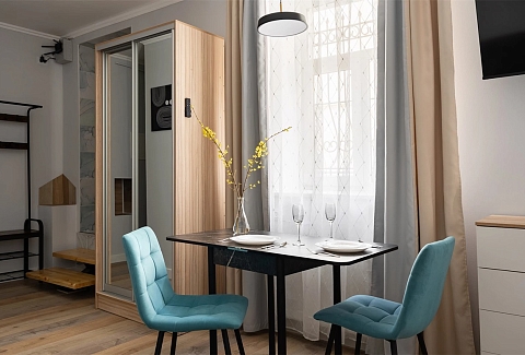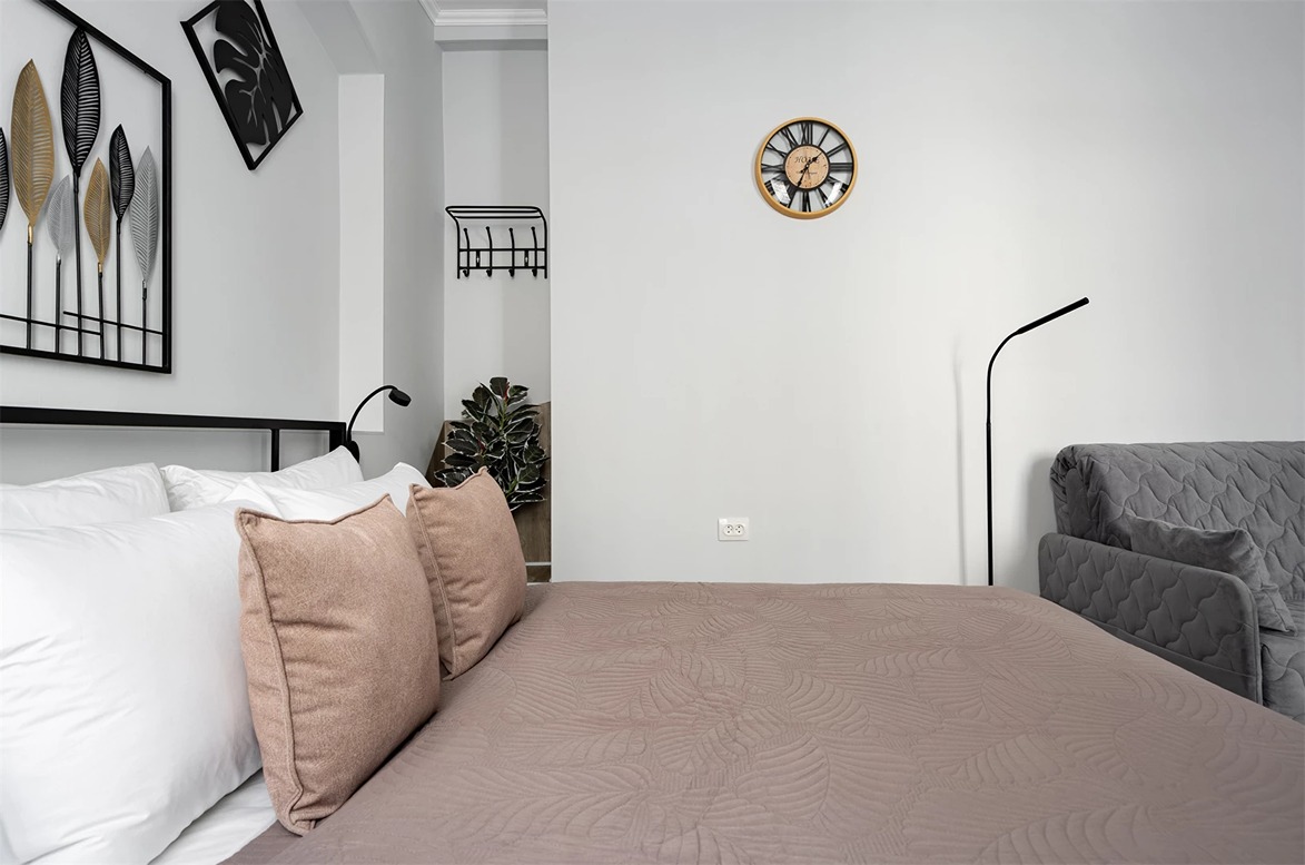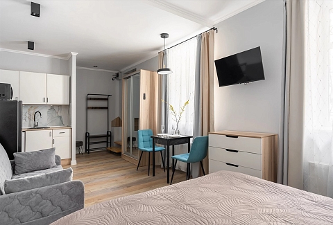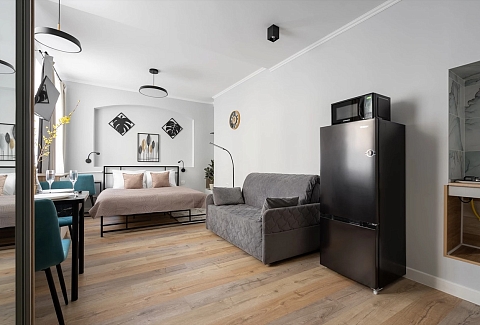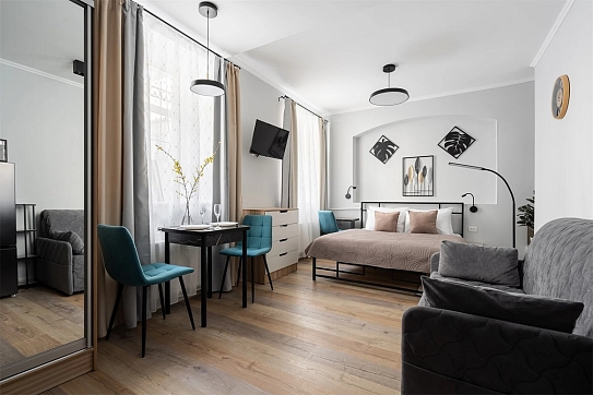 Дизайнерская студия «LetYourFlat Season» идеально подходит для размещения от 2-х до 4-х гостей. Здесь двуспальная кровать Queen-size, диван-кровать, а также мини-кухня и душевая. Доступ в квартиру обеспечен отдельным входом.
