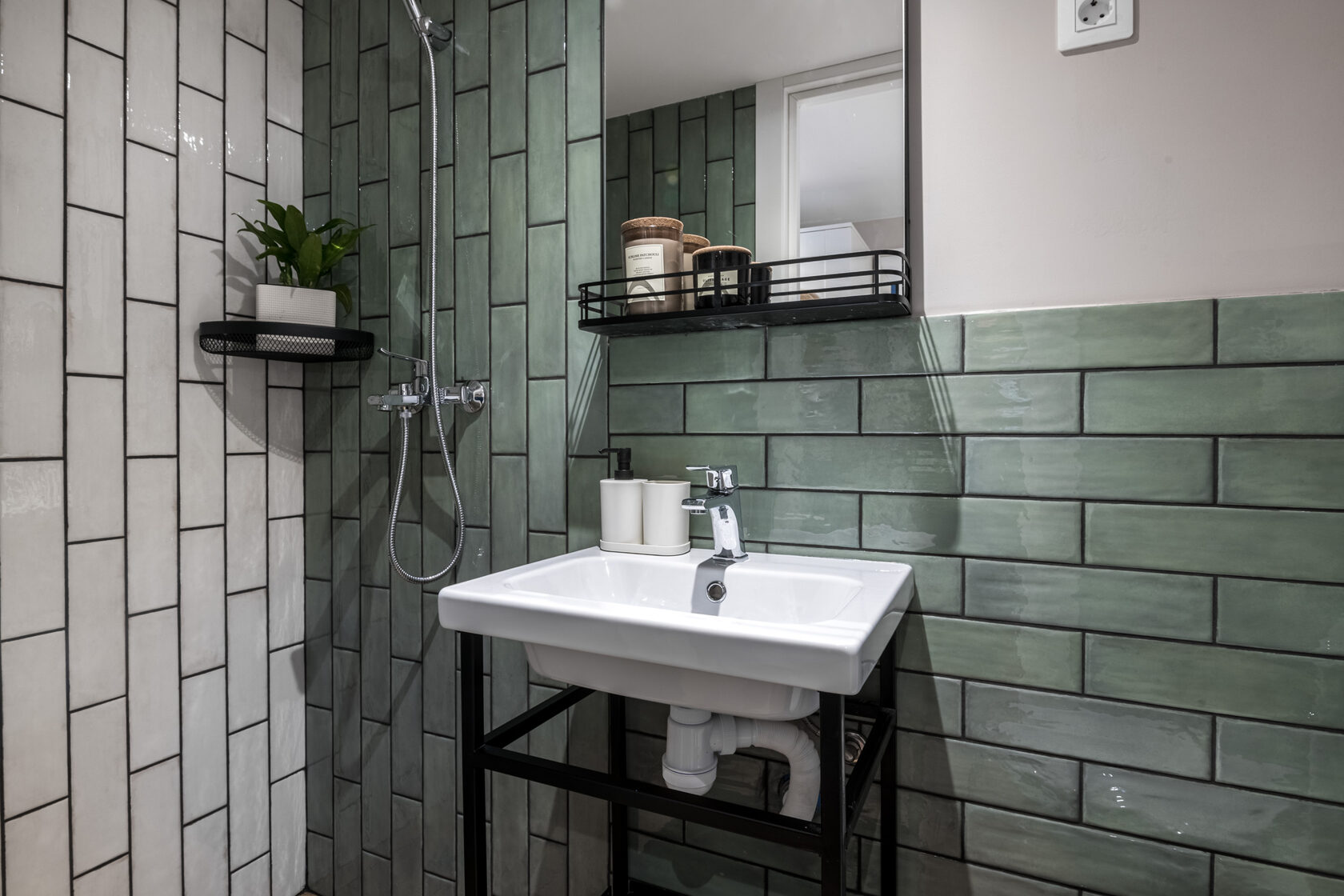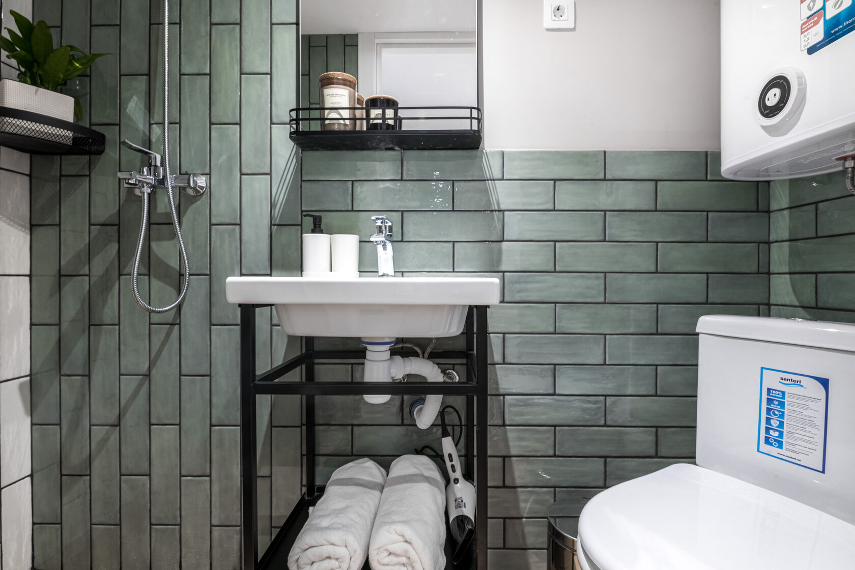 Санузел: с душем, тапочки, туалетные принадлежности, фен