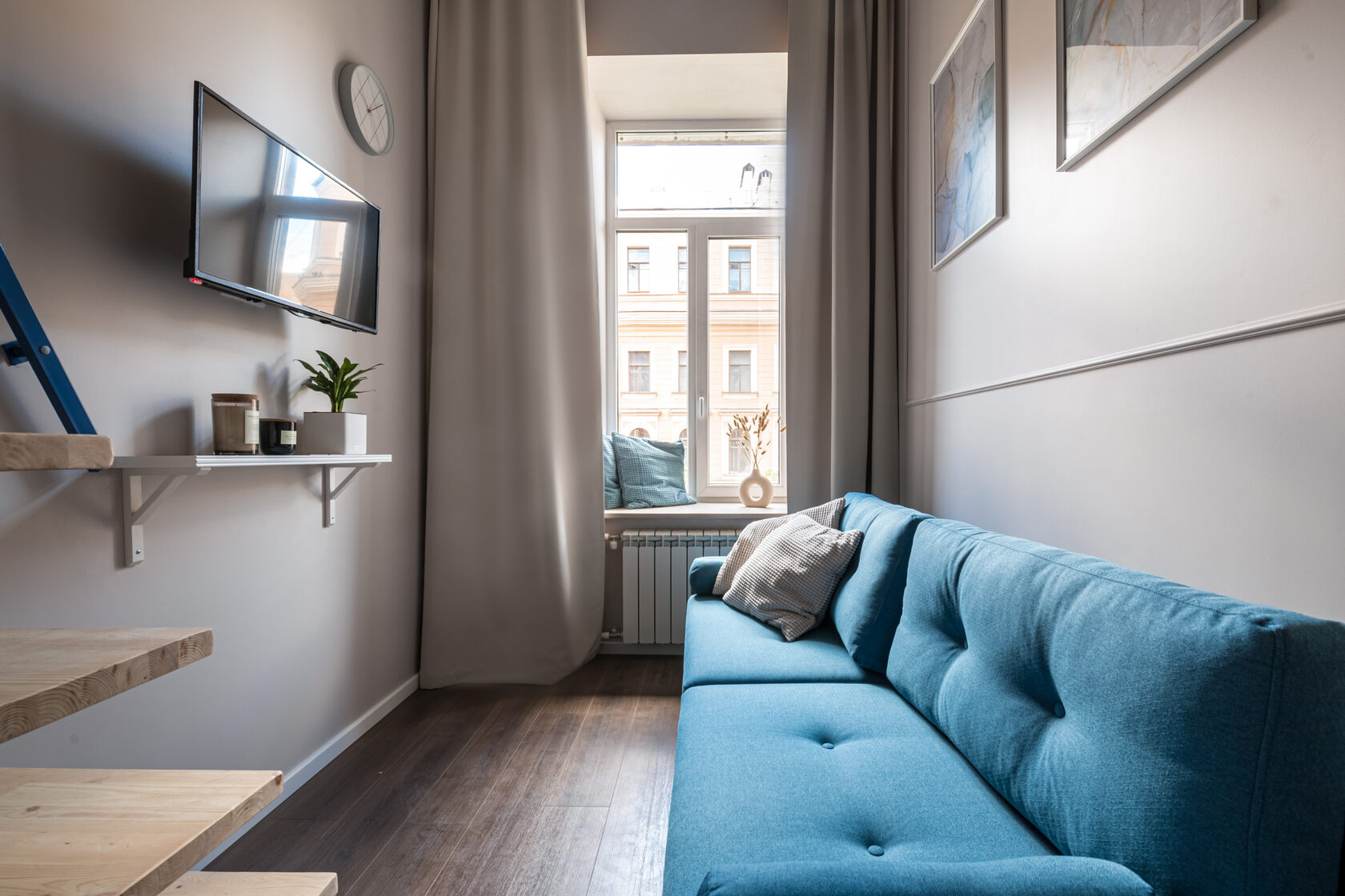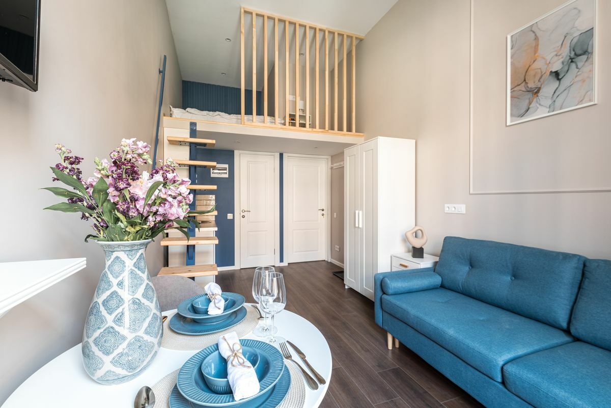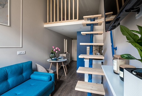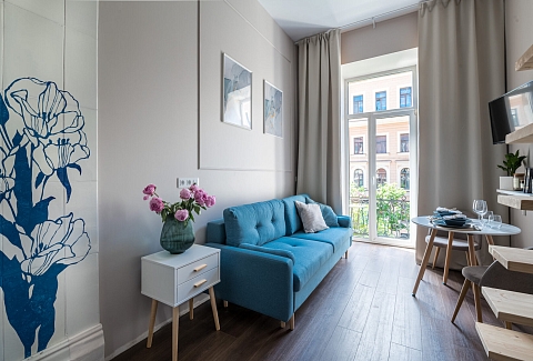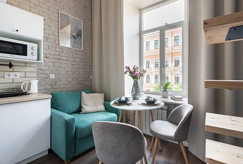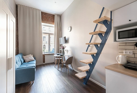 Мечникова, Исследовательские институты и т.д. За 10—15 минут можно доехать до Московского вокзала, куда прибывает большинство поездов дальнего следования из российских городов, в 24 километрах находится аэропорт Пулково. Апартаменты разместились в четырехэтажном здании, расположенном на пересечении улиц Рылеева и Маяковского. Гостей ожидают 10 уютных стильных двухъярусных номеров, каждый из которых оснащен мини-кухней и собственным санузлом. В комнатах есть вся необходимая техника — электрочайник, холодильник, микроволновка, а также фен и плазменный телевизор.