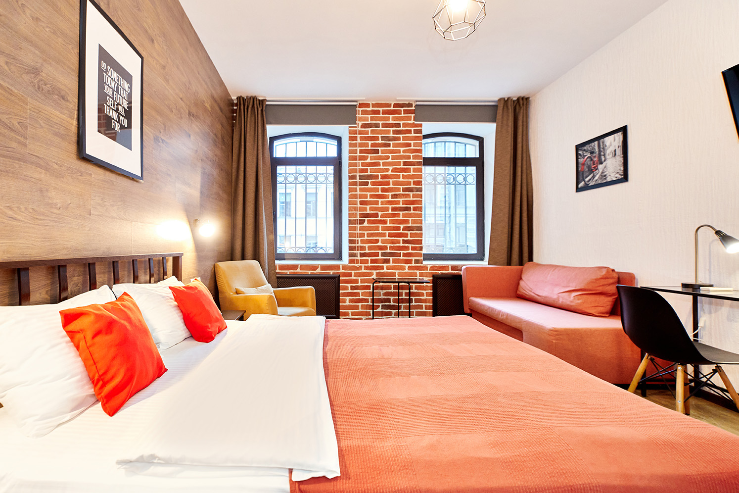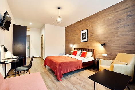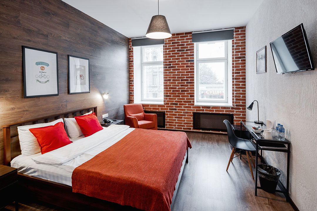 В 5 минутах езды — Московский вокзал, а до аэропорта Пулково — 22 километра.Отель расположен на улице Кирочная в 5-ти этажном историческом здании, выстроенном в эклектичном стиле. Небольшой жилой фонд включает в себя уютные комфортабельные номера, оформленные в современном стиле лофт. В каждом номере имеется санузел с душем, кондиционер, плазменный телевизор, фен и электрочайник. Гостям с маленькими детьми по запросу предоставляются кроватки-манежи и детские горшки.Питание в отеле не предусмотрено, однако, в здании работают несколько ресторанов, где можно вкусно подкрепиться.