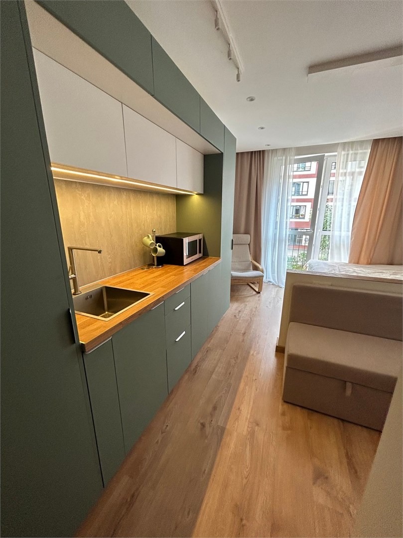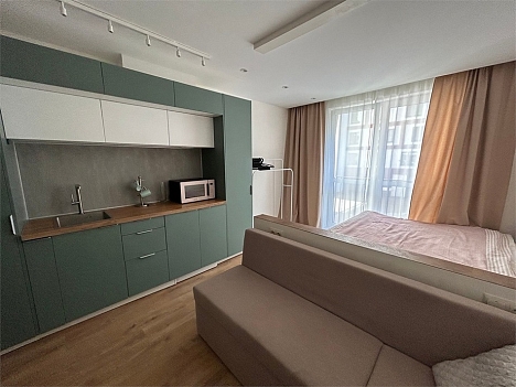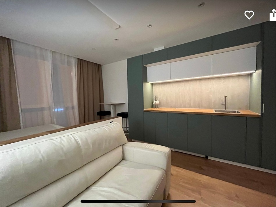 В номере: вешалка, диван раскладной, зеркало, кровать двуспальная, стол, стулья, шкаф, гладильная доска, микроволновая печь, набор посуды, плита электрическая, посудомоечная машина, стиральная машина, сушилка для белья, телевизор, утюг, холодильник, электрочайник
