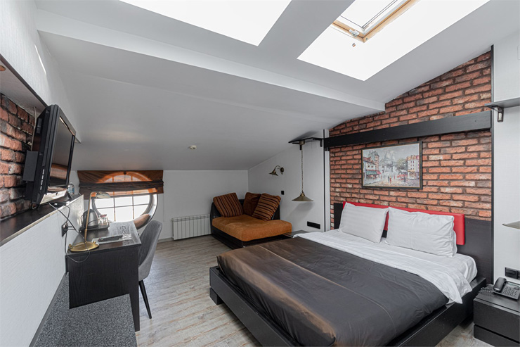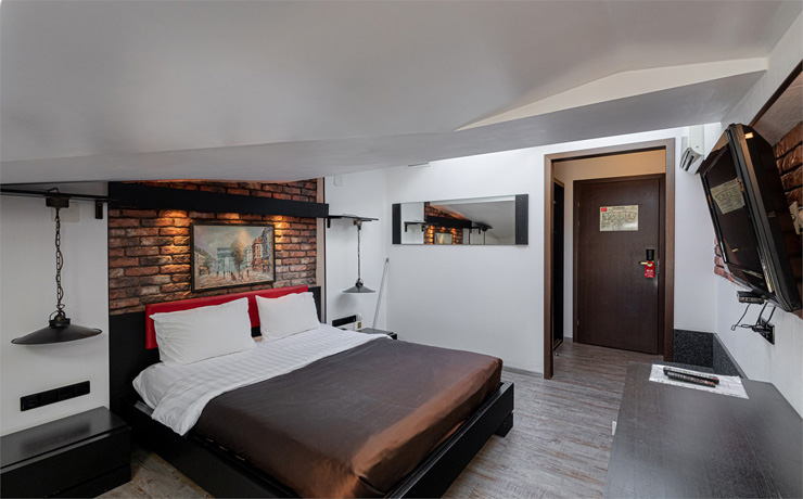 Лофт-интерьер каждого номера включает авторскую мебель, индивидуальный кондиционер, ЖК-телевизор, телефон, мини-холодильник, чайный набор, ванную комнату с подогреваемым полом, банные принадлежности, гигиенический душ, фен и тапочки. Завтрак сервируется ежедневно. Wi-Fi доступен на всей территории отеля. Дополнительно предлагаются услуги прачечной и трансфер до отеля. Утюг и гладильная доска предоставляются по запросу. Перед заездом и после выезда гости могут оставить свои вещи на хранение у администратора.