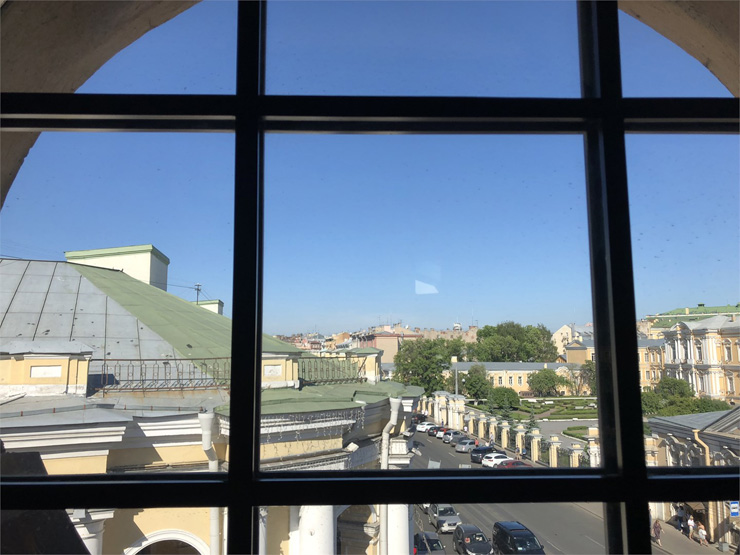 Самолетом до аэропорта Пулково (г. Санкт-Петербург), далее на рейсовом автобусе №39 до остановки «ст. м. Московская», далее на метро до станции «Сенная площадь», далее пройти 670 м до отеля.