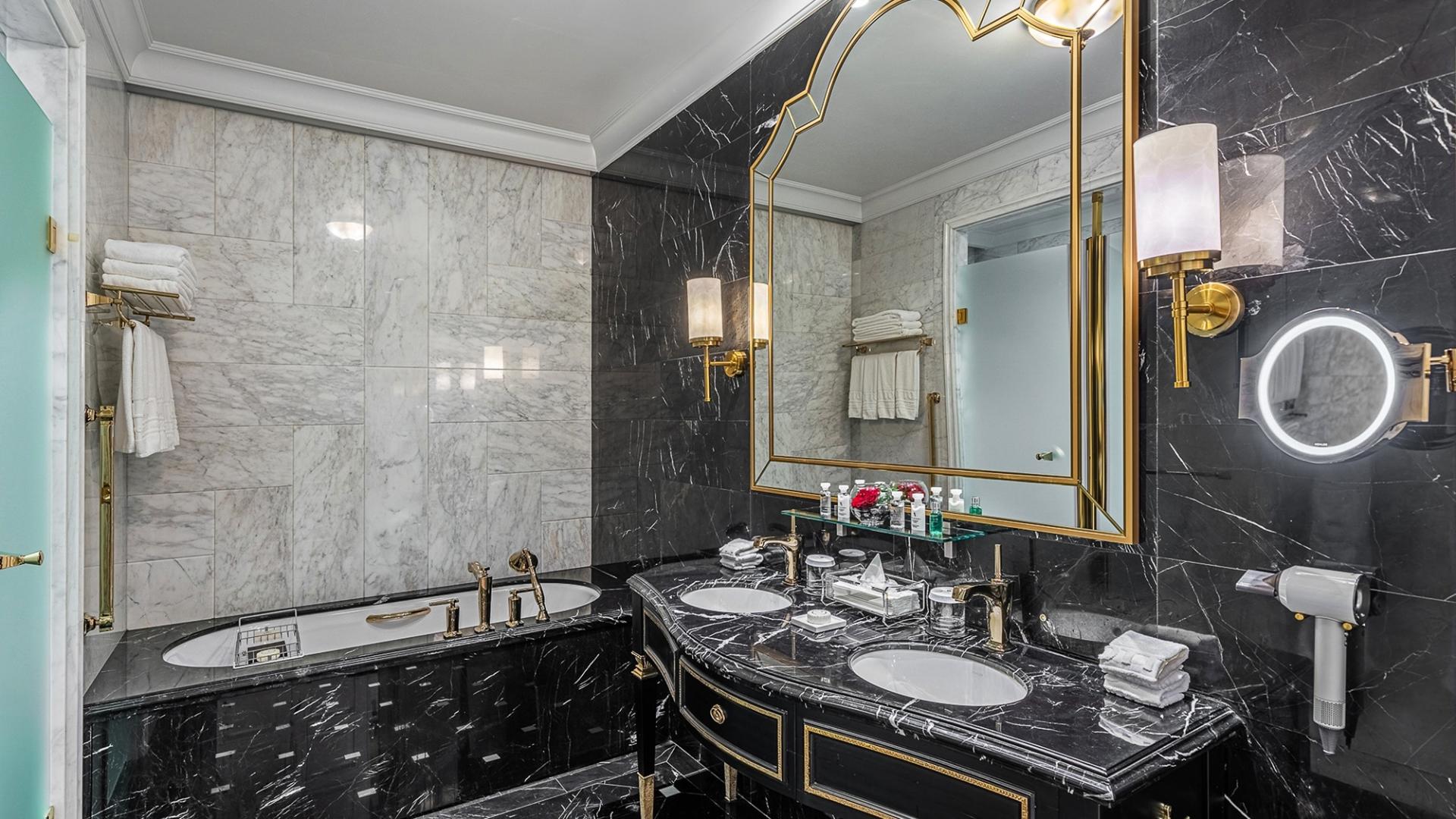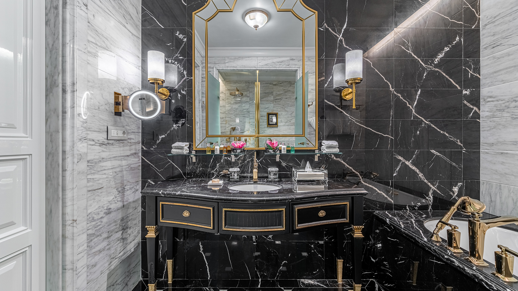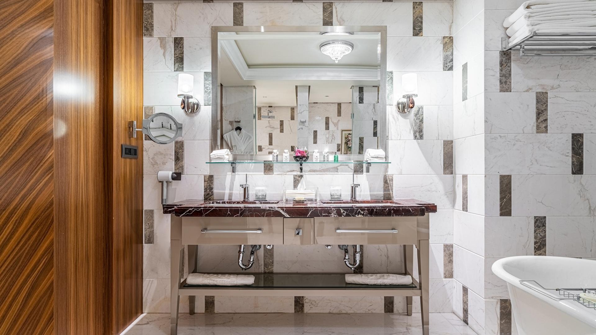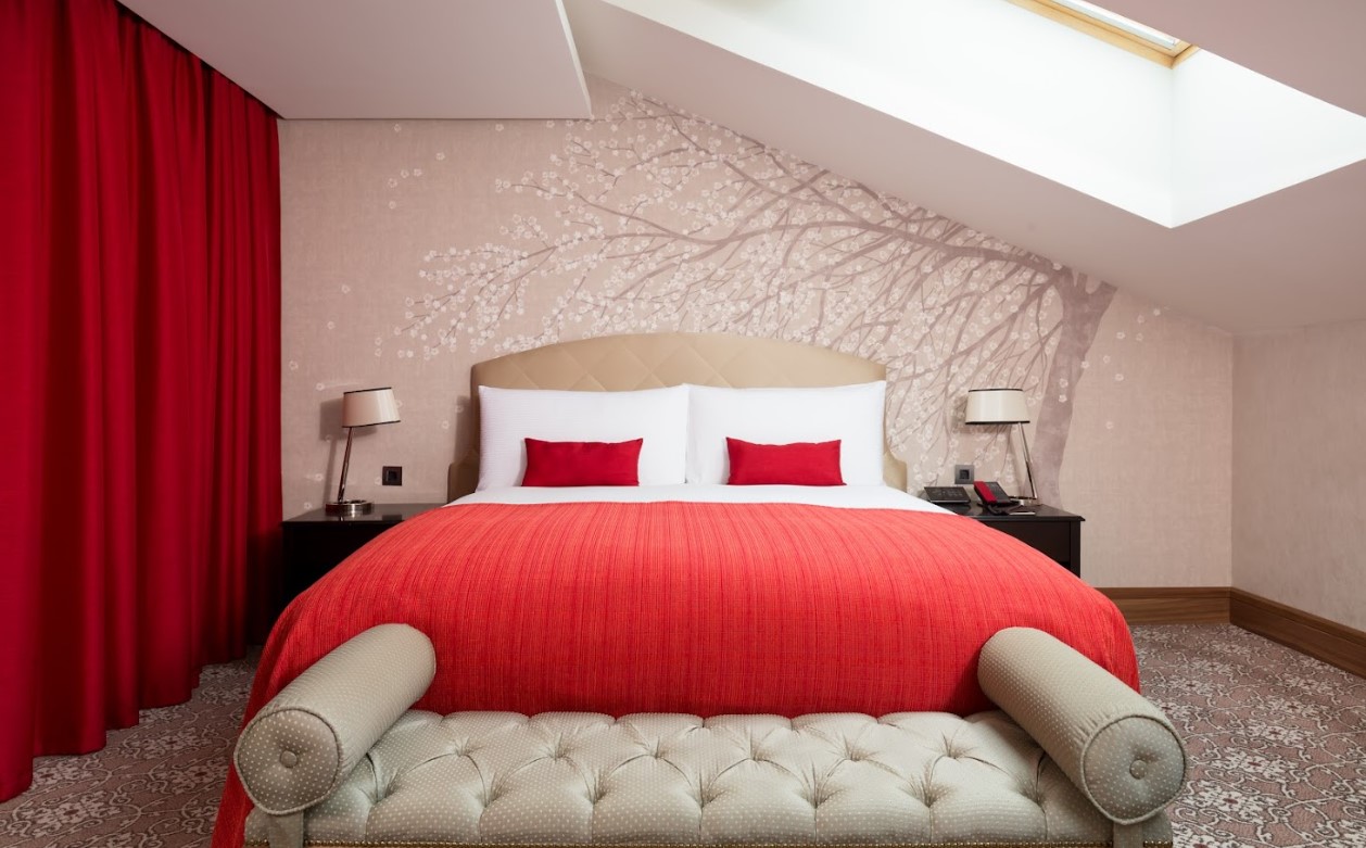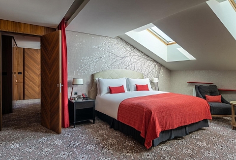 В номере: вешалка, диван, зеркало, кровать двуспальная, прикроватные тумбочки, стол, стулья, шкаф, кофемашина, мини-холодильник, телевизор