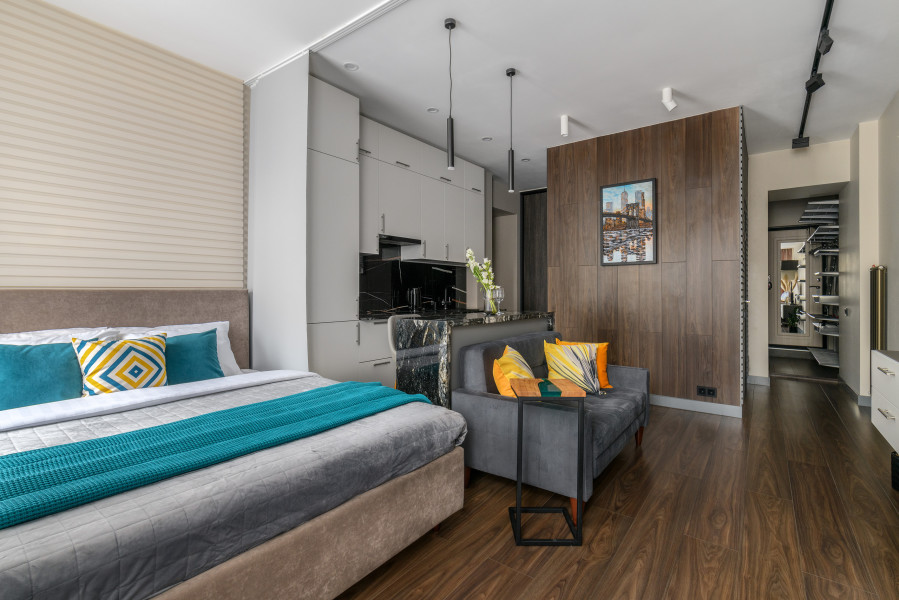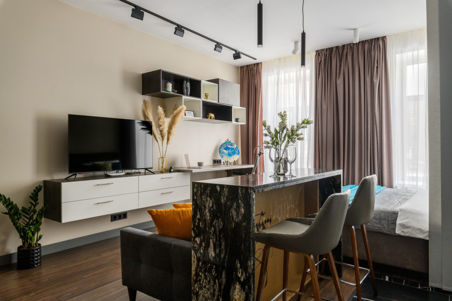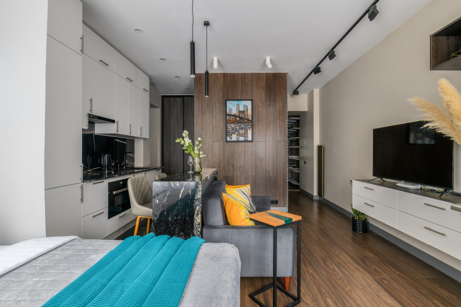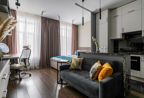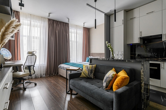 Студия удобно расположена в историческом здании, построенном в 1913 году, в самом центре Васильевского острова. До станций метро «Василеостровская» и «Спортивная» можно дойти пешком всего за 5-8 минут, а прекрасная набережная Невы находится совсем рядом.Благодаря развитой инфраструктуре, в непосредственной близости расположены уютные пекарни, кофейни, рестораны, магазины и аптеки. У вас будет всё необходимое под рукой!В распоряжении гостей полностью оборудованная кухня с электрической плитой, холодильником, духовкой с функцией микроволновой печи и посудомоечной машиной.