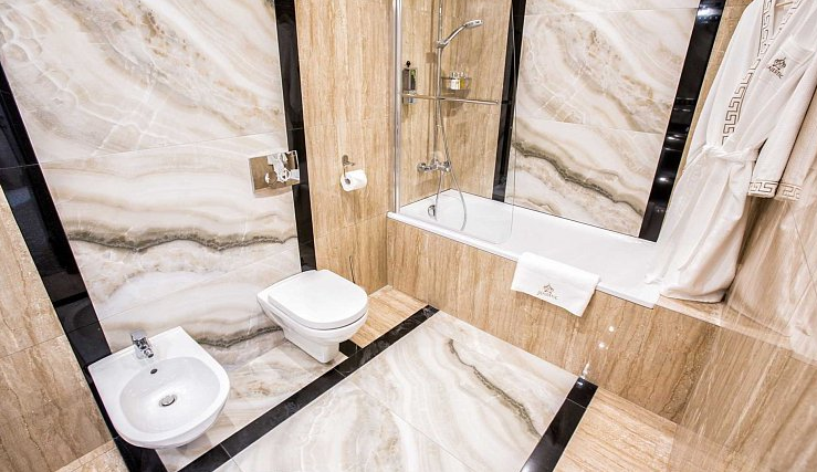 Санузел: с ванной/душем, тапочки, туалетные принадлежности, фен, халат